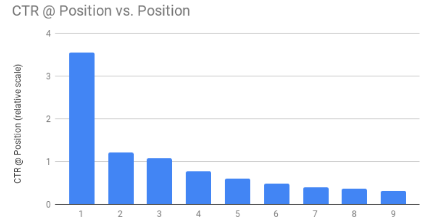 用户隐式反馈的分析:为了验证我们的训练数据中是否存在位置偏差,我们对不同位置的点击率click through rate: CTR进行了分析。下图给出了位置1 ~ 9 的相对 CTR ( 进行了同比例缩放)。正如预期所示,随着位置越来越低,点击率将显著降低。