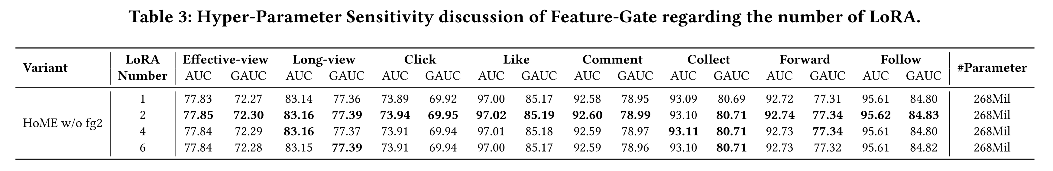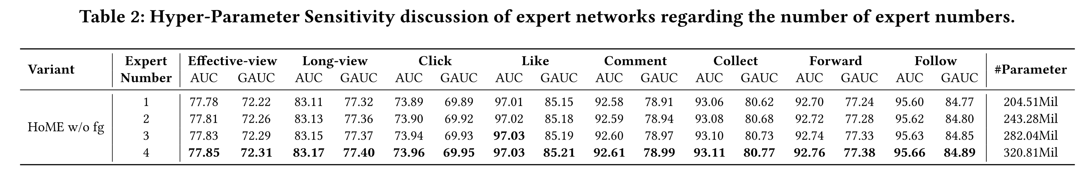 据我们所知,本文是首个专注于提升多任务 MoE 系统稳定性的研究工作。我们通过大量离线和在线实验(离线 GAUC 平均提升0.52% ,在线 play-time per user 提升 0.954% )及消融分析,验证了 HoME 的有效性。目前,HoME 已部署在 Kuaishou 短视频业务中,每日服务 400 million 用户。