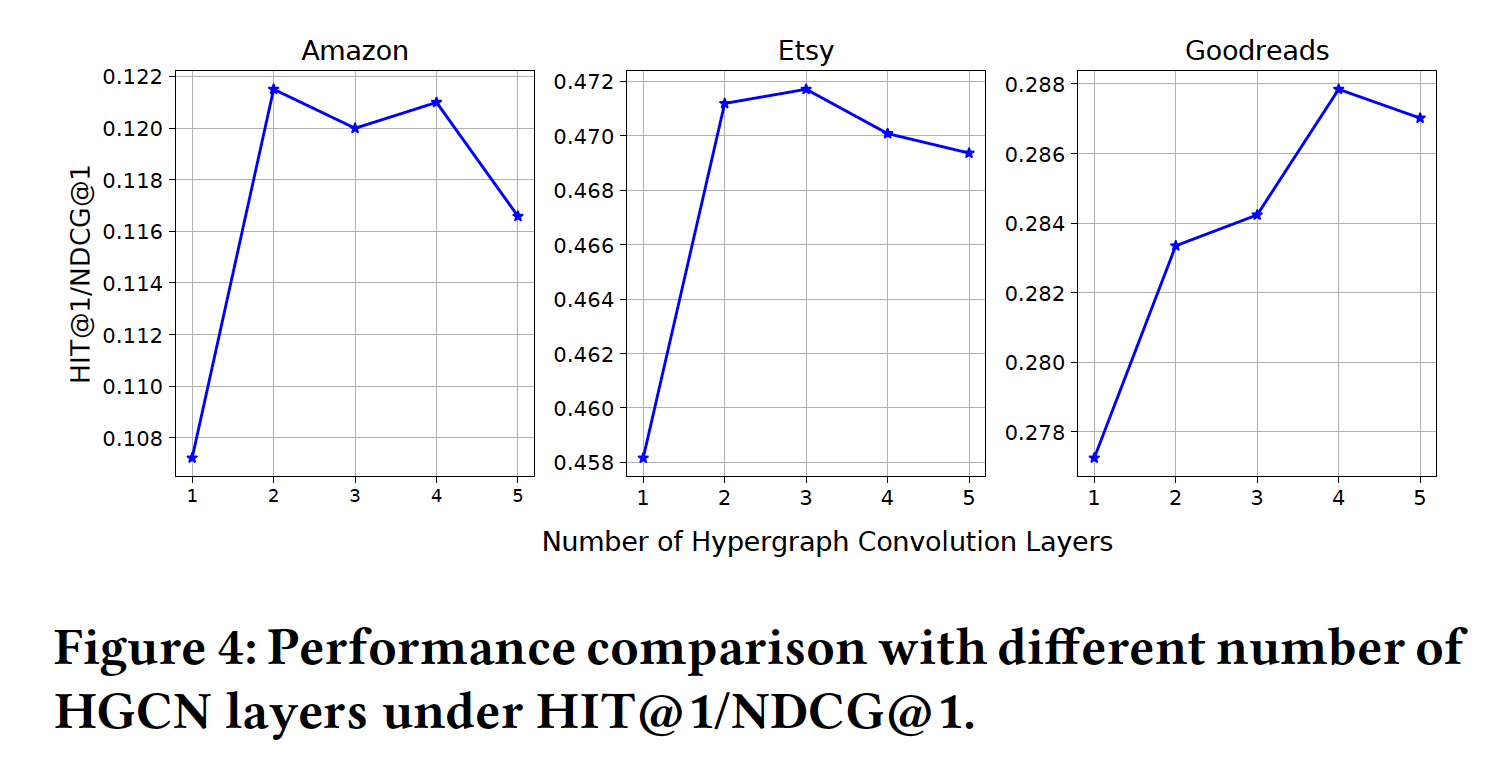 然而,由于 Goodreads 在每个超图中包含相对更多的交互,因此更多的卷积层可以进一步改善 embedding 过程。