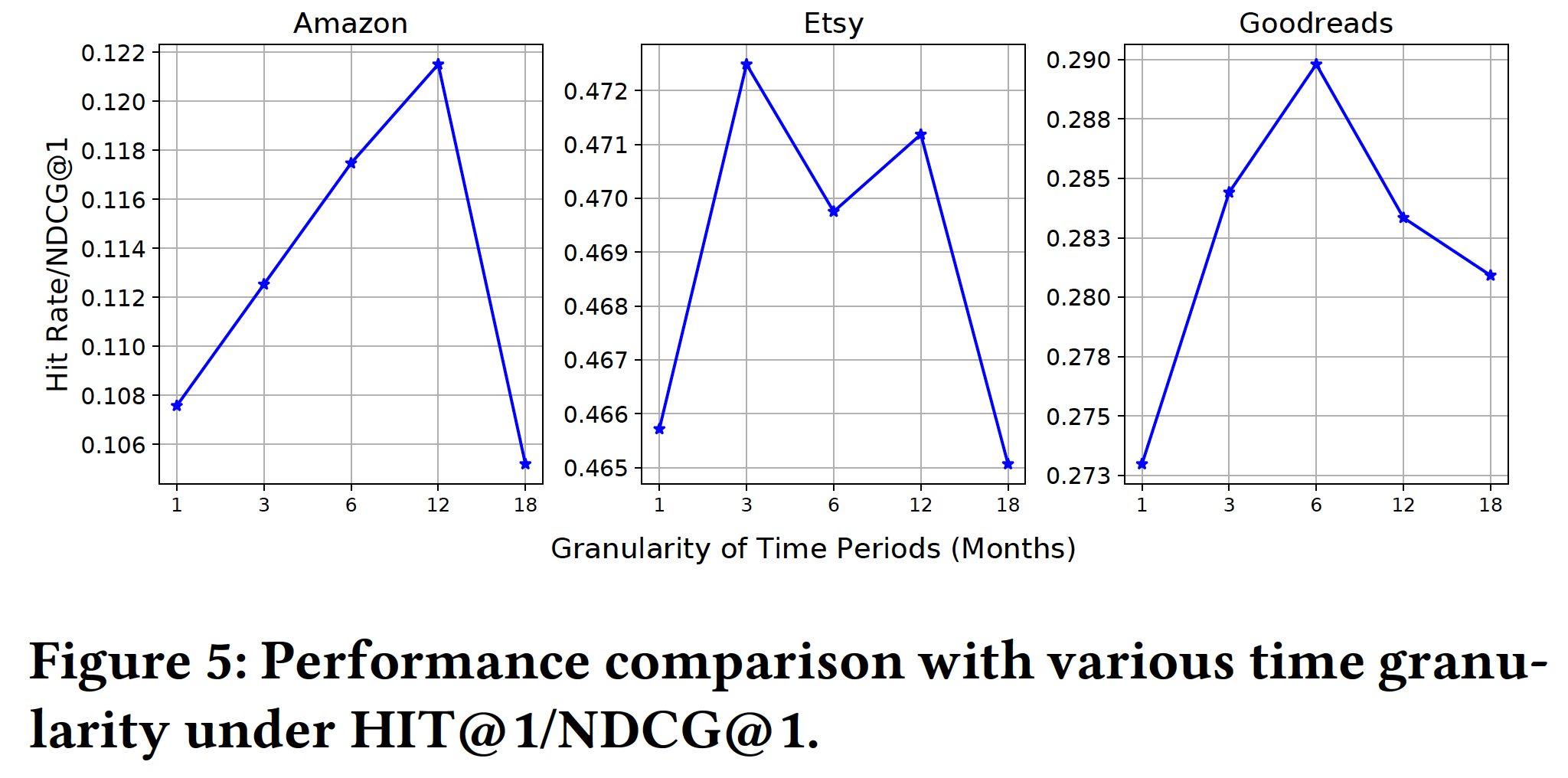 如果我们进一步扩大粒度,则模型性能会下降,因为这会低估 item 的变化并且可能会给模型带来噪声。