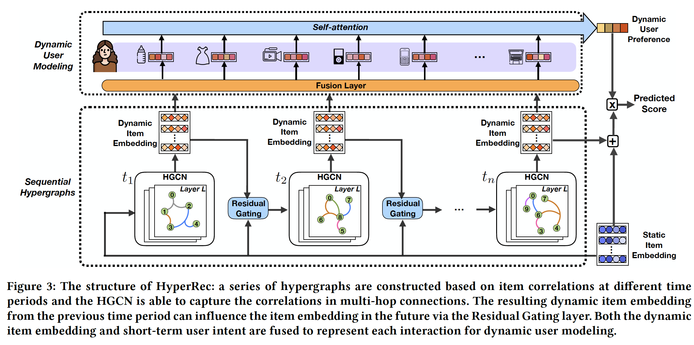 接下来,以超图为主要的拓扑结构,我们将讨论如何有效地生成这种动态的 item representation,并同时考虑 item 在短期内的相关性和不同时间段之间的联系(connection)。