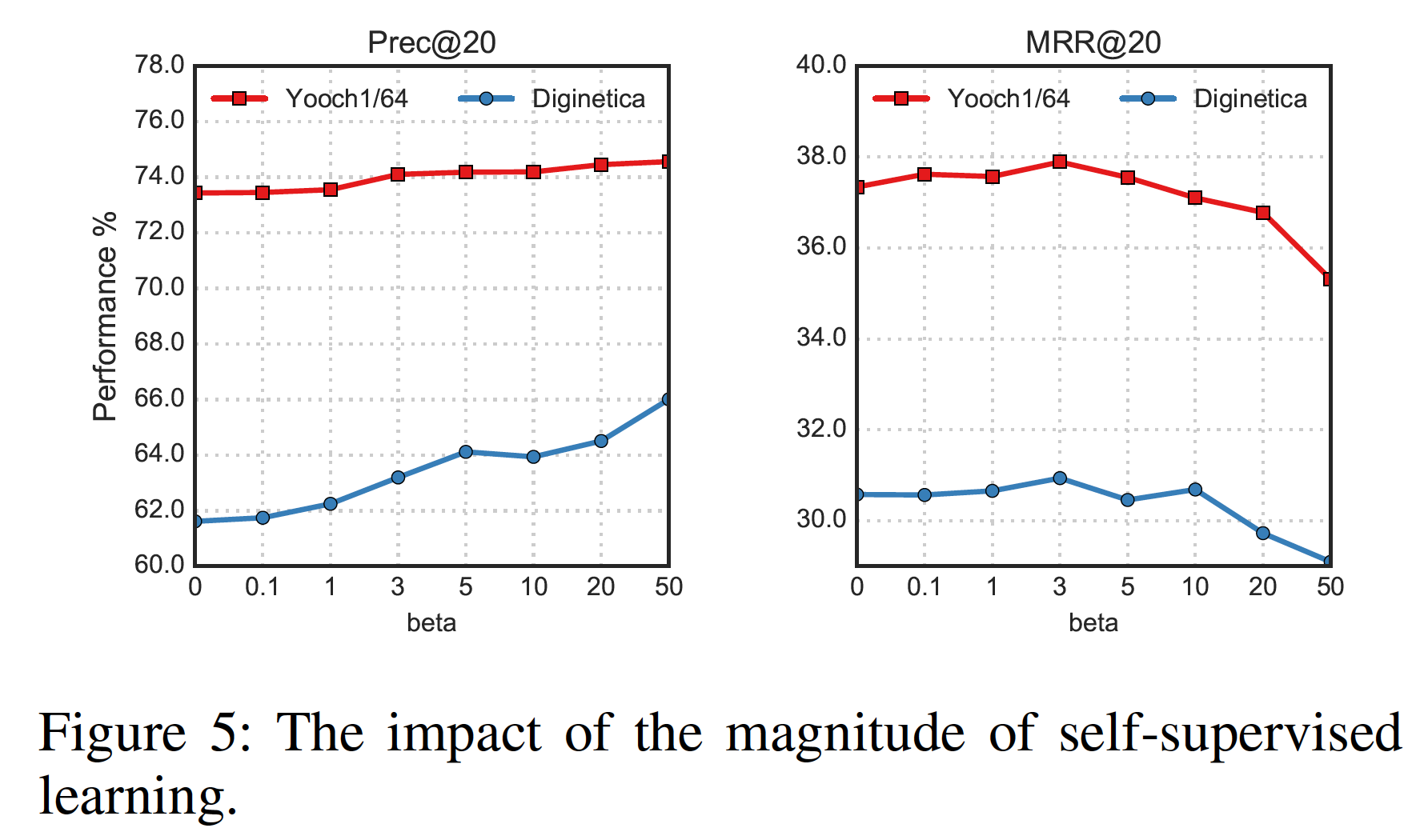 随着 MRR@20 开始下降,但是 Prec@20 仍然保持增加。目前,我们不知道为什么 Prec@20 没有性能下降,希望我们在未来的工作中解决这个问题。