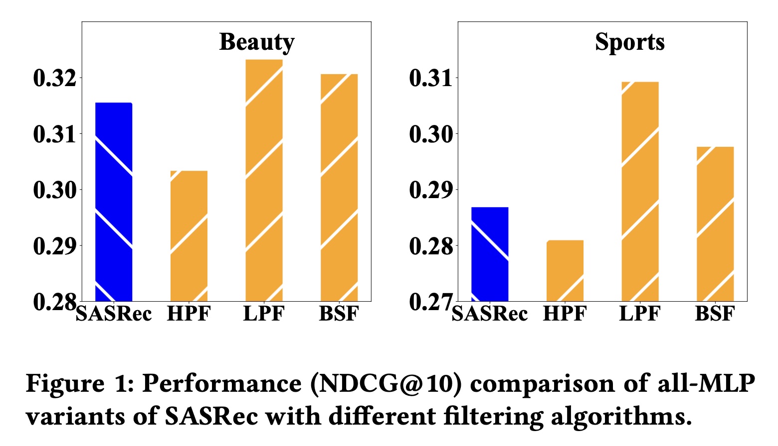 我们在 Figure 1 中报告基于 SASRec 的 all-MLP 变体模型的性能。可以看到: