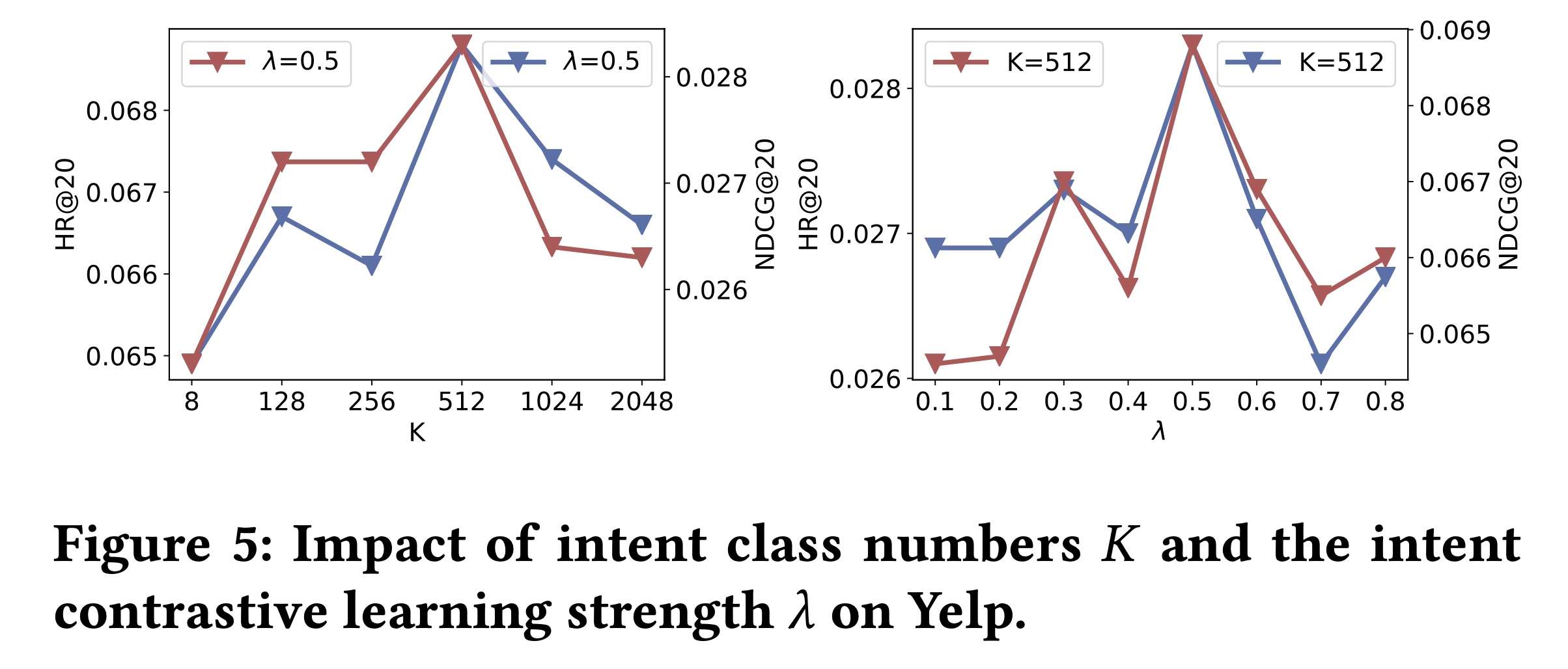 在 Yelp 数据集中,512 个用户意图能最好地概括用户的 distinct 行为。