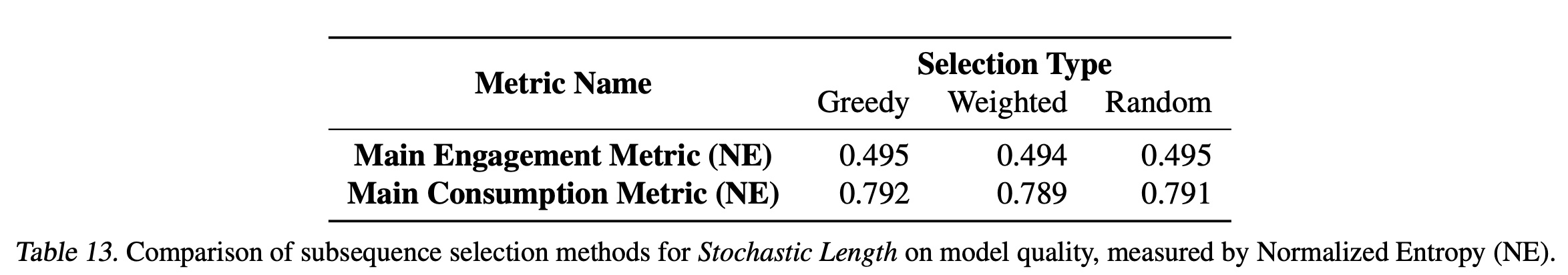 我们从完整的用户历史中选择长度为 subsequence selection 技术的精心设计可以提高模型质量。我们计算指标 item subsequence selection 方法进行了离线实验: