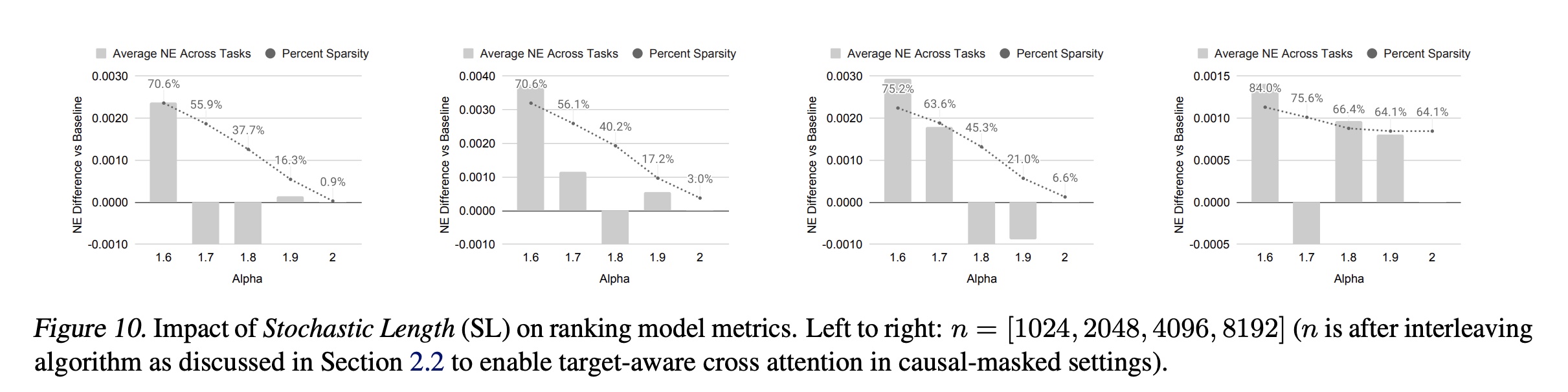 Figure 10:Stochastic Length 对 ranking 模型指标的影响。从左到右: