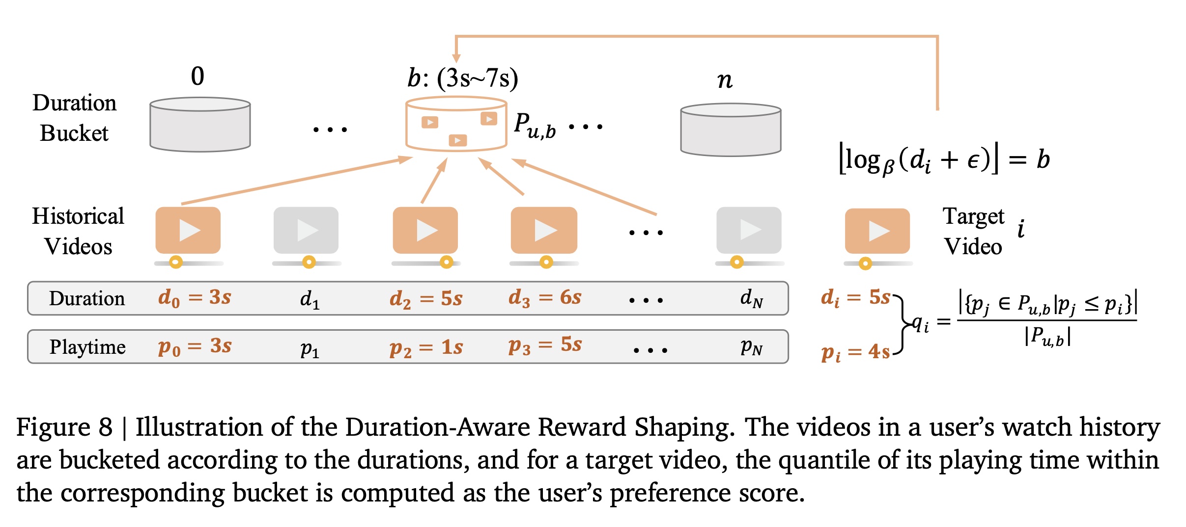 (i) Duration-Aware Reward Shaping:通过考虑视频长度差异(video length variations),缓解 raw watch time signals 中的固有 bias,确保 reward signals 准确地反映内容质量(content quality )而非仅仅反映时长(duration )。
