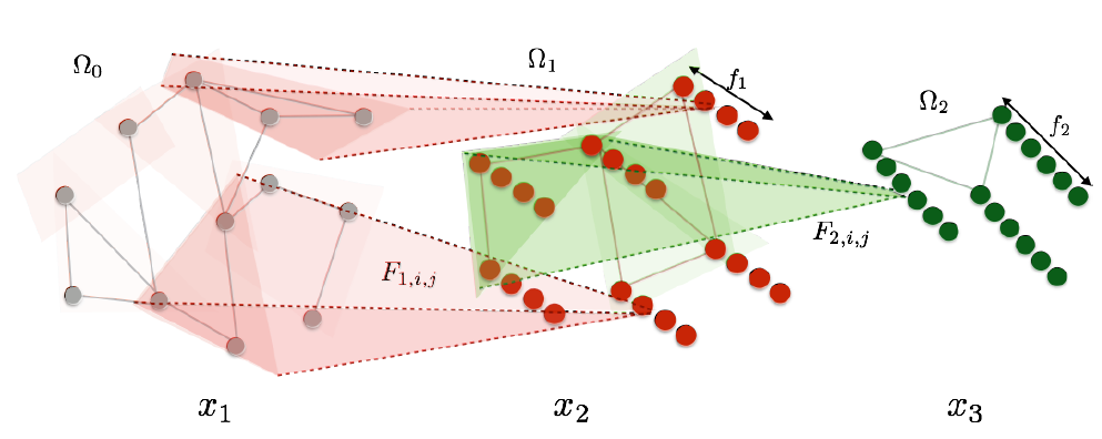 的状态向量 依赖于其邻居的状态向量集合 。而邻居的状态向量又依赖于邻居的邻居的状态向量集合。 注意:这里的邻域依赖性使得计算状态向量所依赖的节点规模迅速膨胀。假设平均邻域大小为