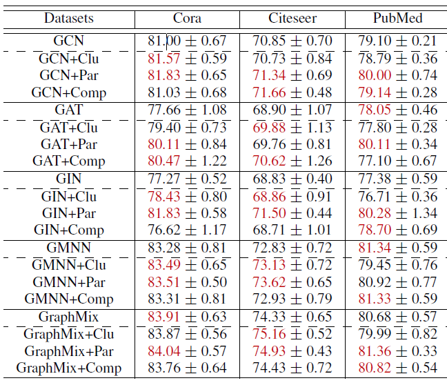 让 GCN “看到” 更多标记数据的另一个方法是对 GCN 进行 self-train 。具体而言,我们首先通过给定的标记数据来训练 GCN,然后通过比较 softmax 得分为每个类别选择最置信的未标记数据,然后将这些未标记数据添加到对应的类别的标记数据集合中。然后,我们使用扩展的标记数据集合来训练 GCN,并使用预先训练好的 GCN 来作为初始化。