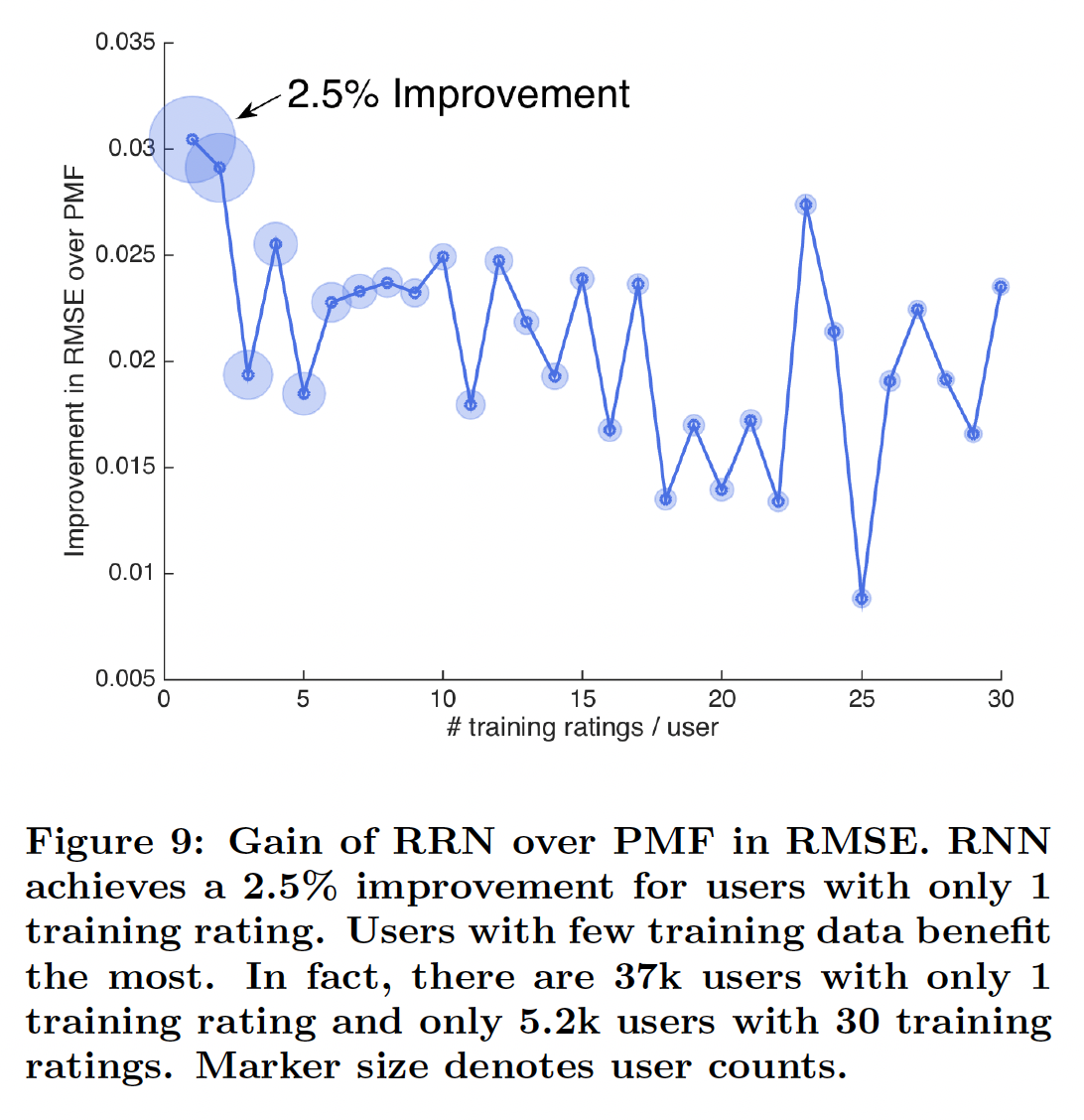 相比之下,我们的模型不依赖于特征工程,并且能够在未看到未来的用户行为的情况下(看到未来的用户行为本来就是不切实际的)预测未来的评分。