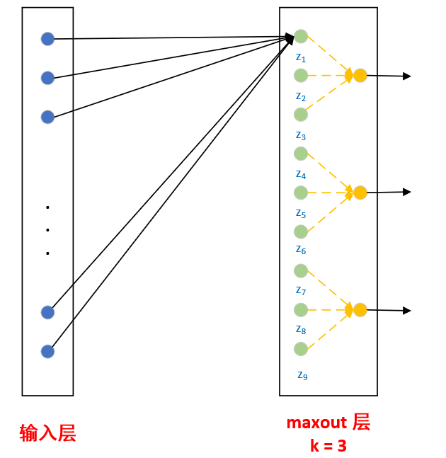 经过maxout层之后,输出维数降低到输入的 。这意味着下一层的权重参数的数量降低到maxout层的 。