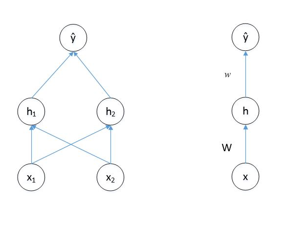 假设隐层的激活函数是线性的,则 也是线性的,暂时忽略截距项,则 。 即: 。