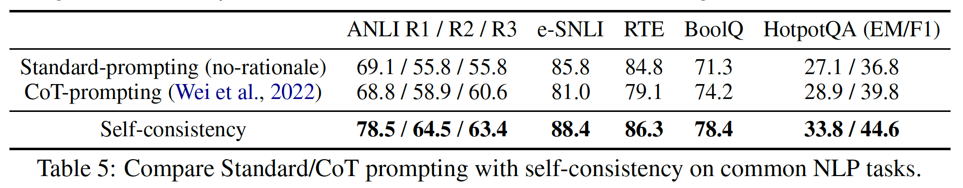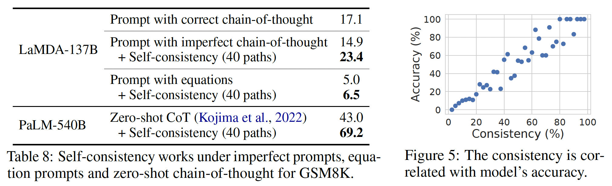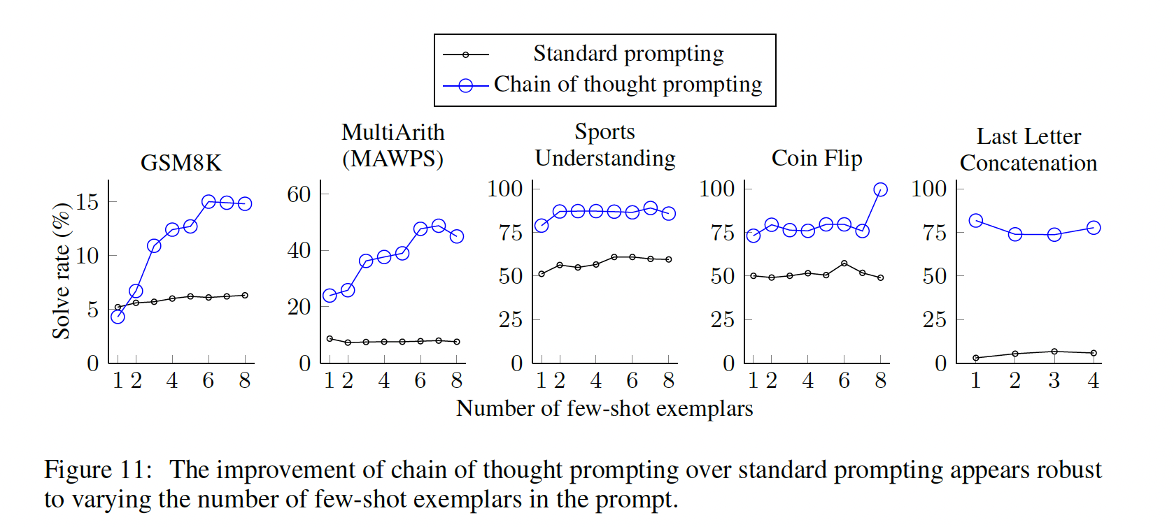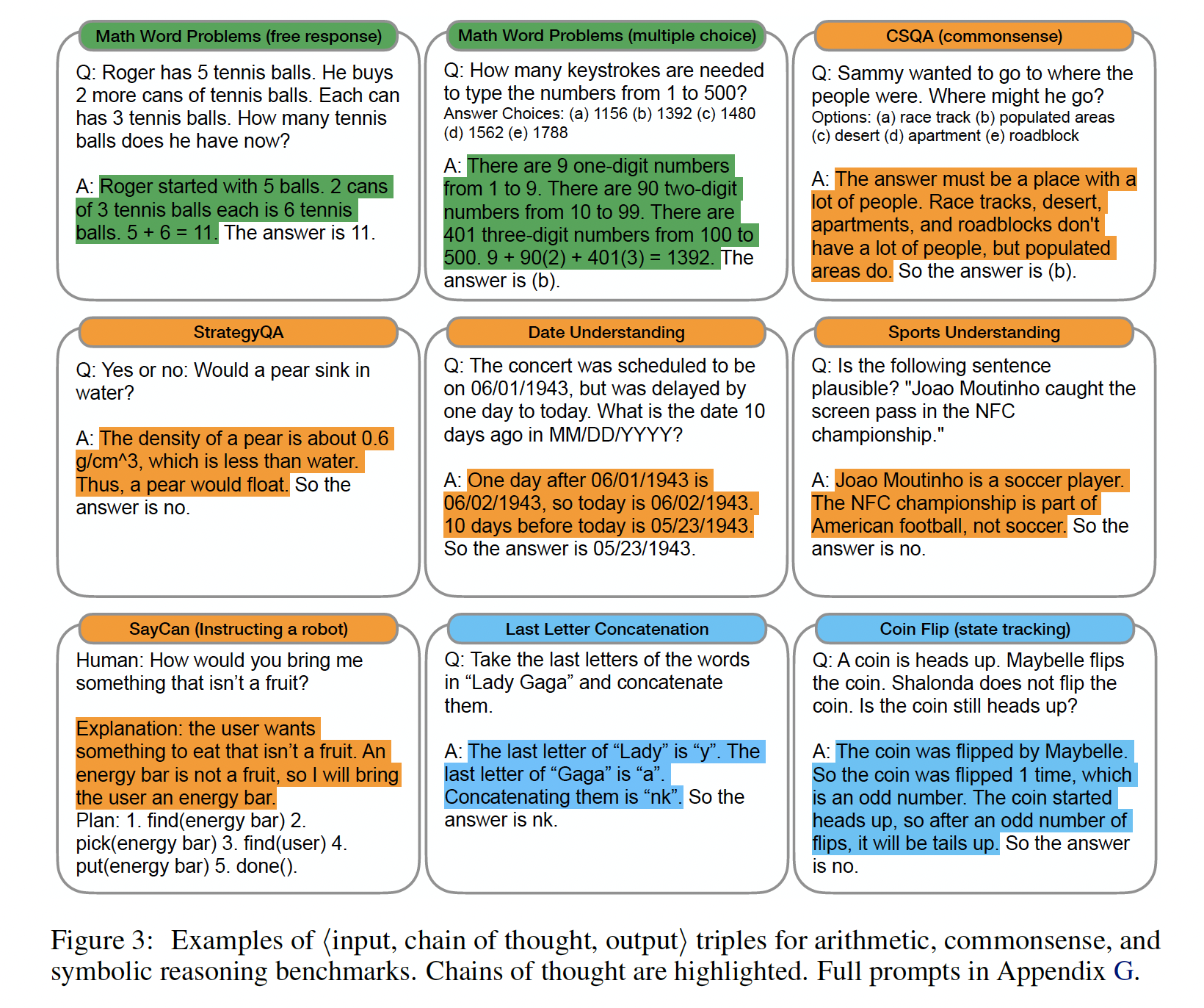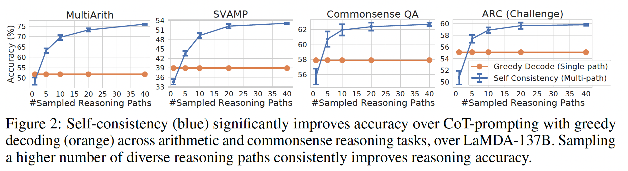 最近提出的 chain-of-thought prompting 方法(《Chain of thought prompting elicits reasoning in large language models》)为缩小人类智能和机器智能之间的差距迈出了重要一步。它结合了自然语言理由(natural language rationale)和 few-shot prompting(GPT-3)的思想。当与 self-consistency 解码(《Self-consistency improves chain of thought reasoning in language mod》)进一步整合,而不是使用典型的贪婪解码时,在许多具有挑战性的自然语言处理任务上, few-shot chain-of-thought prompting 在很大程度上超过了文献中的 SOTA 结果,这些 SOTA 结果是由专门设计的神经模型在数百倍的标注样本的训练下得到的,同时 few-shot chain-of-thought prompting 也是完全可解释的。
