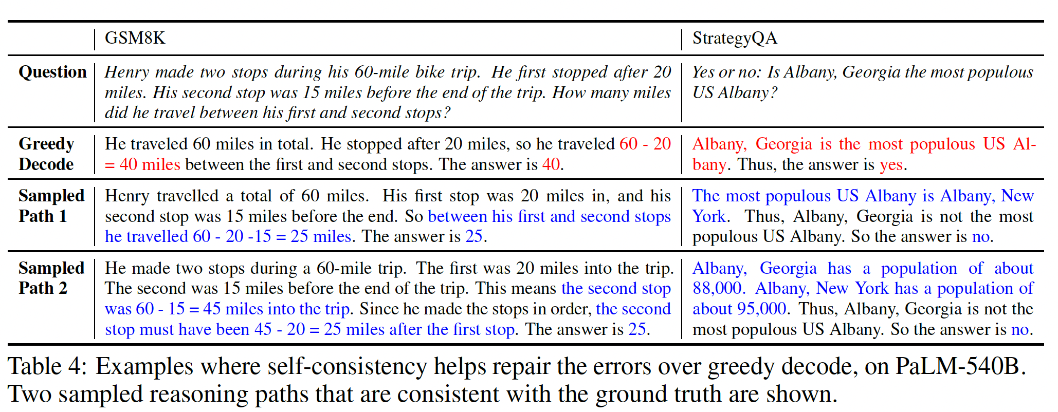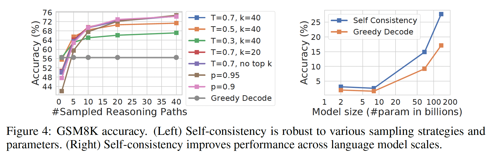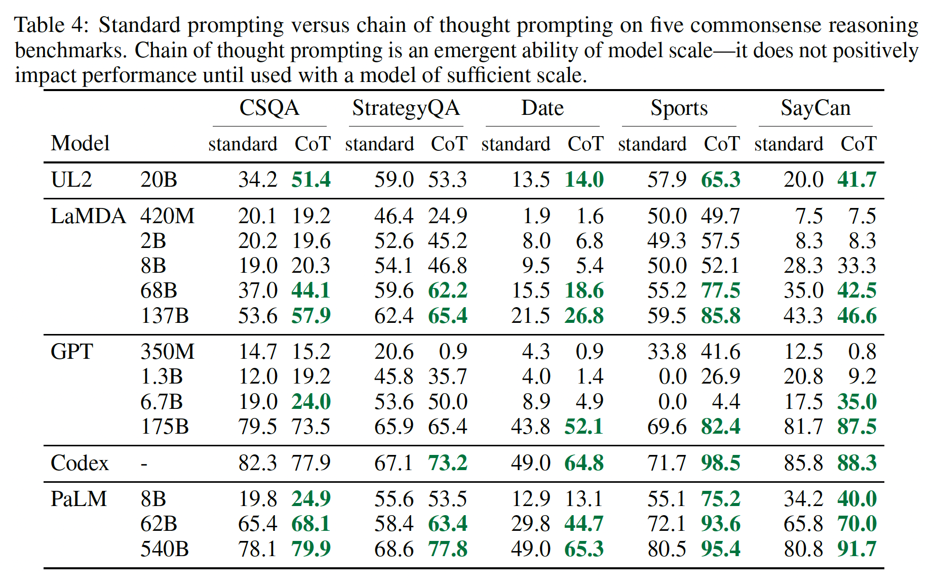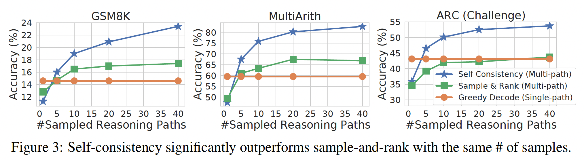 最近提出的 chain-of-thought prompting 方法(《Chain of thought prompting elicits reasoning in large language models》)为缩小人类智能和机器智能之间的差距迈出了重要一步。它结合了自然语言理由(natural language rationale)和 few-shot prompting(GPT-3)的思想。当与 self-consistency 解码(《Self-consistency improves chain of thought reasoning in language mod》)进一步整合,而不是使用典型的贪婪解码时,在许多具有挑战性的自然语言处理任务上, few-shot chain-of-thought prompting 在很大程度上超过了文献中的 SOTA 结果,这些 SOTA 结果是由专门设计的神经模型在数百倍的标注样本的训练下得到的,同时 few-shot chain-of-thought prompting 也是完全可解释的。