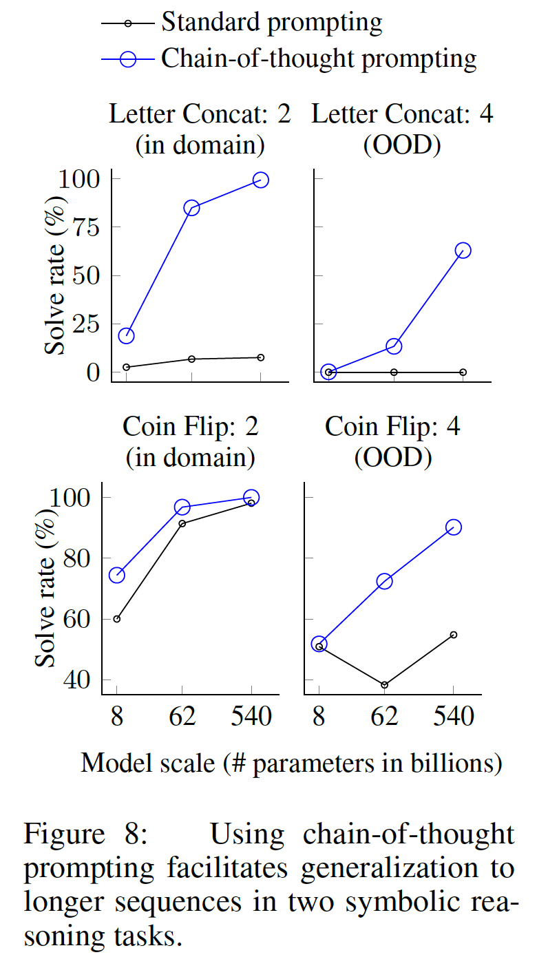 easy-to-hard generalization:除了组合泛化,还有许多其他任务,测试样本比训练样本需要更多的推理步骤来解决,例如,last-letter-concatenation 任务。