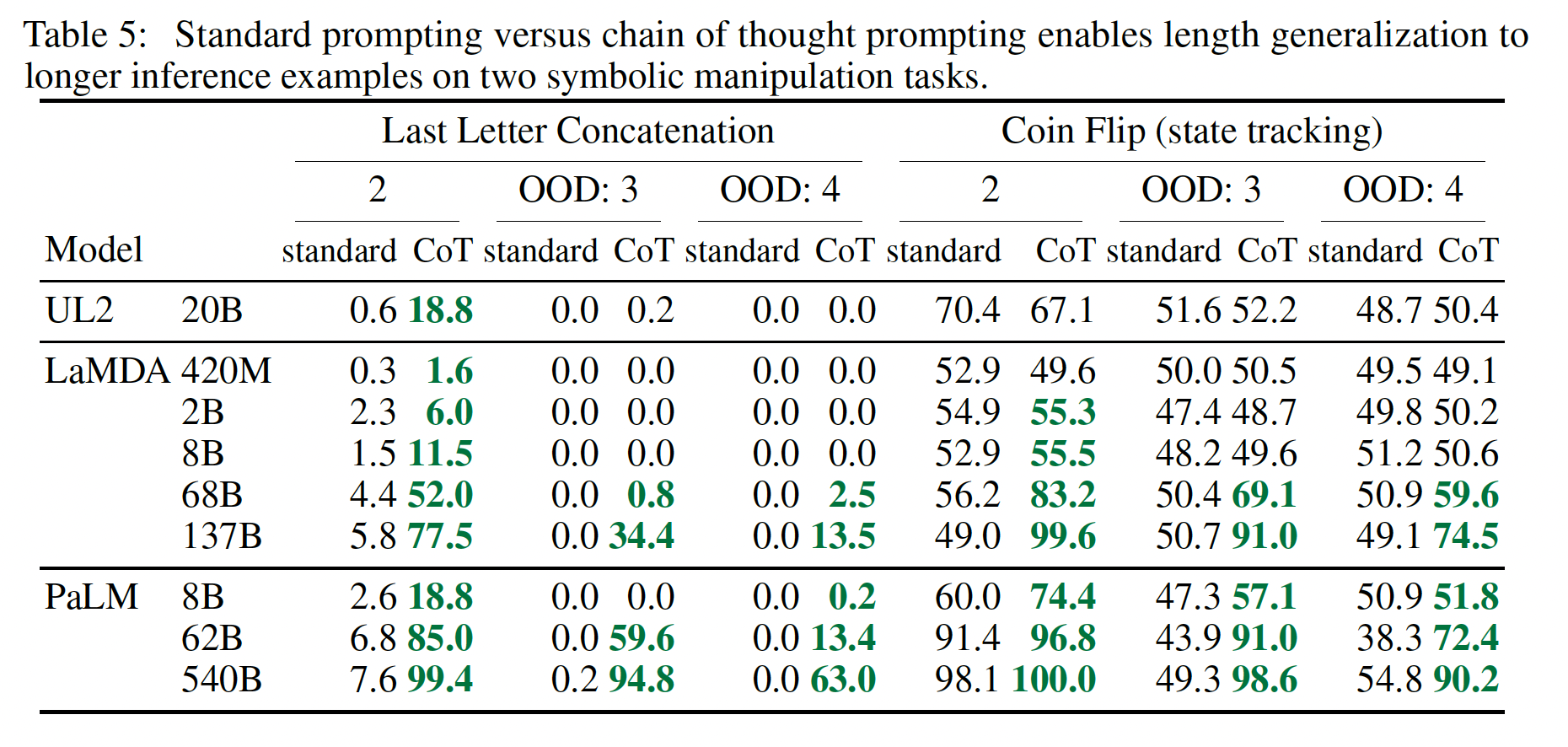 符号推理:Last Letter Concatenation, Coin Flip 。