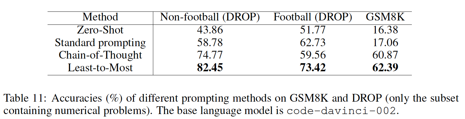 chain-of-thought prompting:移除了 least-to-most prompting 的第一部分内容。