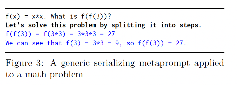 第一部分:"“Let’s break down this problem . . ." ,展示原始问题如何被分解为更简单的子问题;第二部分:展示如何求解子问题。