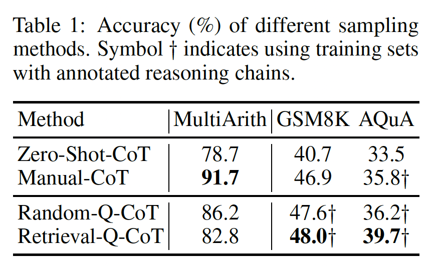 然后,当第一个 batch 的问题 Zero-Shot-CoT (由于 reasoning chain question-chain pairs