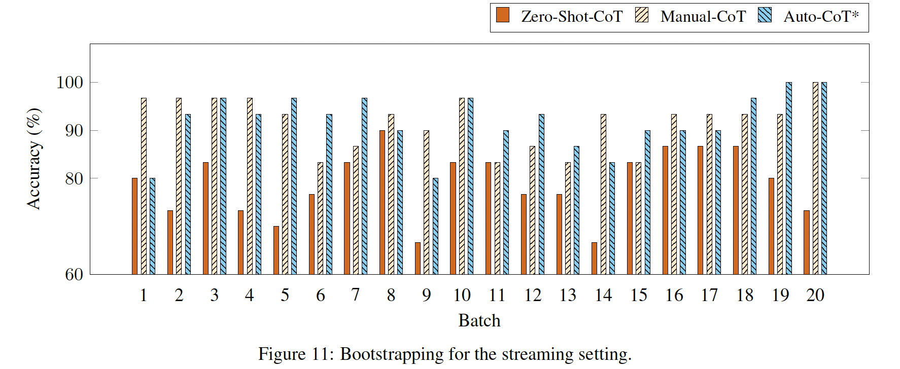 从 batch 2 开始,Auto-CoT* 的表现与 Manual-CoT 相当。