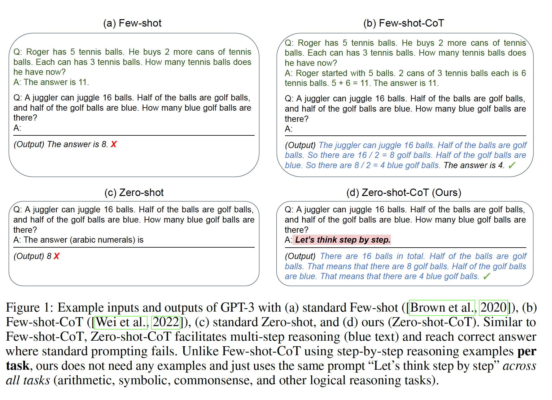 Zero-Shot-CoT 和 Manual-CoT 如 Figure 1 所示。