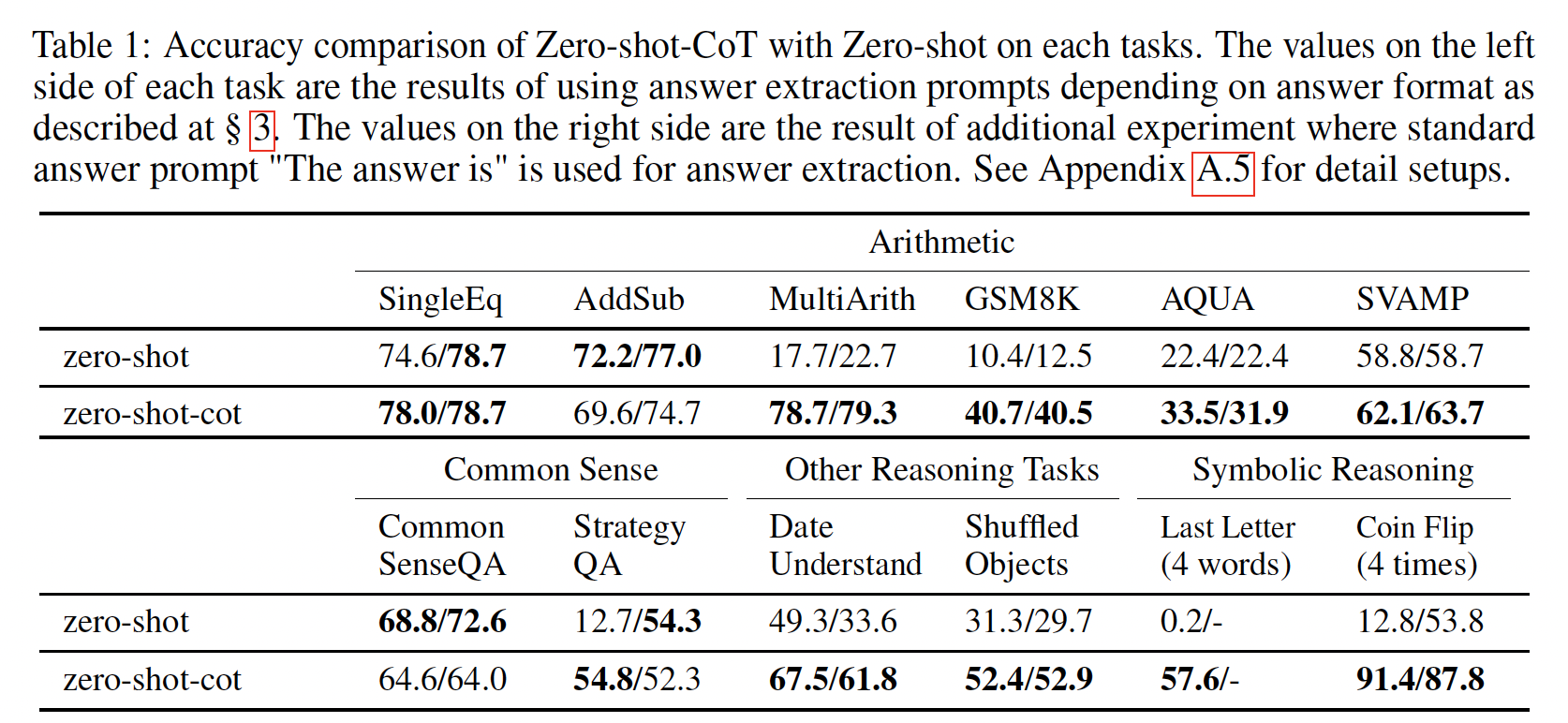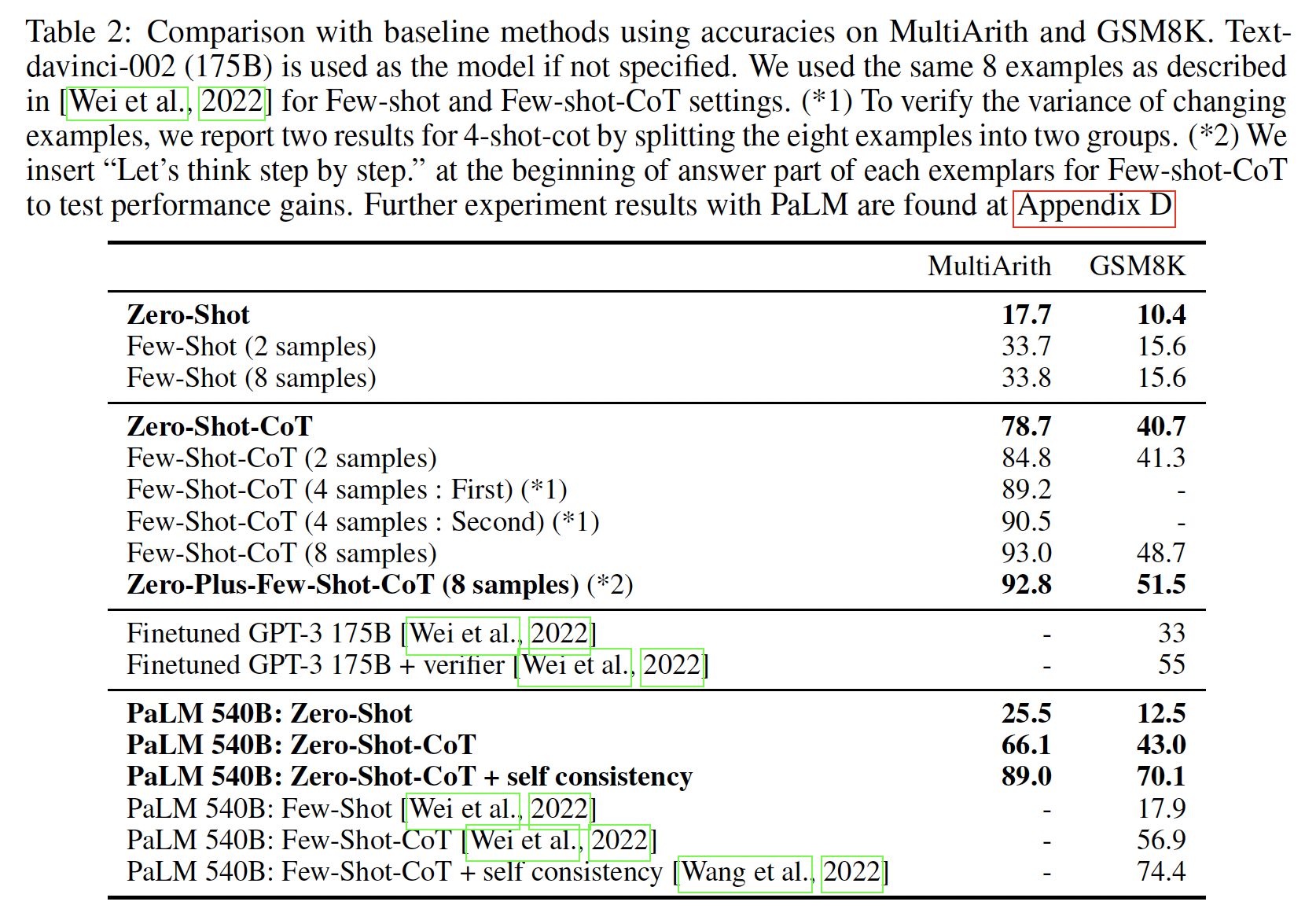 Zero-Shot 和 Zero-Shot-CoT 的结果取自 《Large language models are zero-shot reasoners》 。