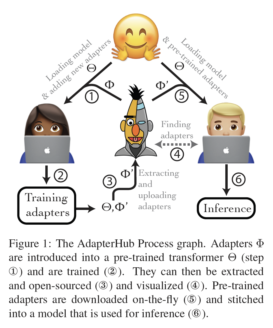 AdapterHub 为 adapters 的整个生命周期提供工具,如 Figure 1 所示: