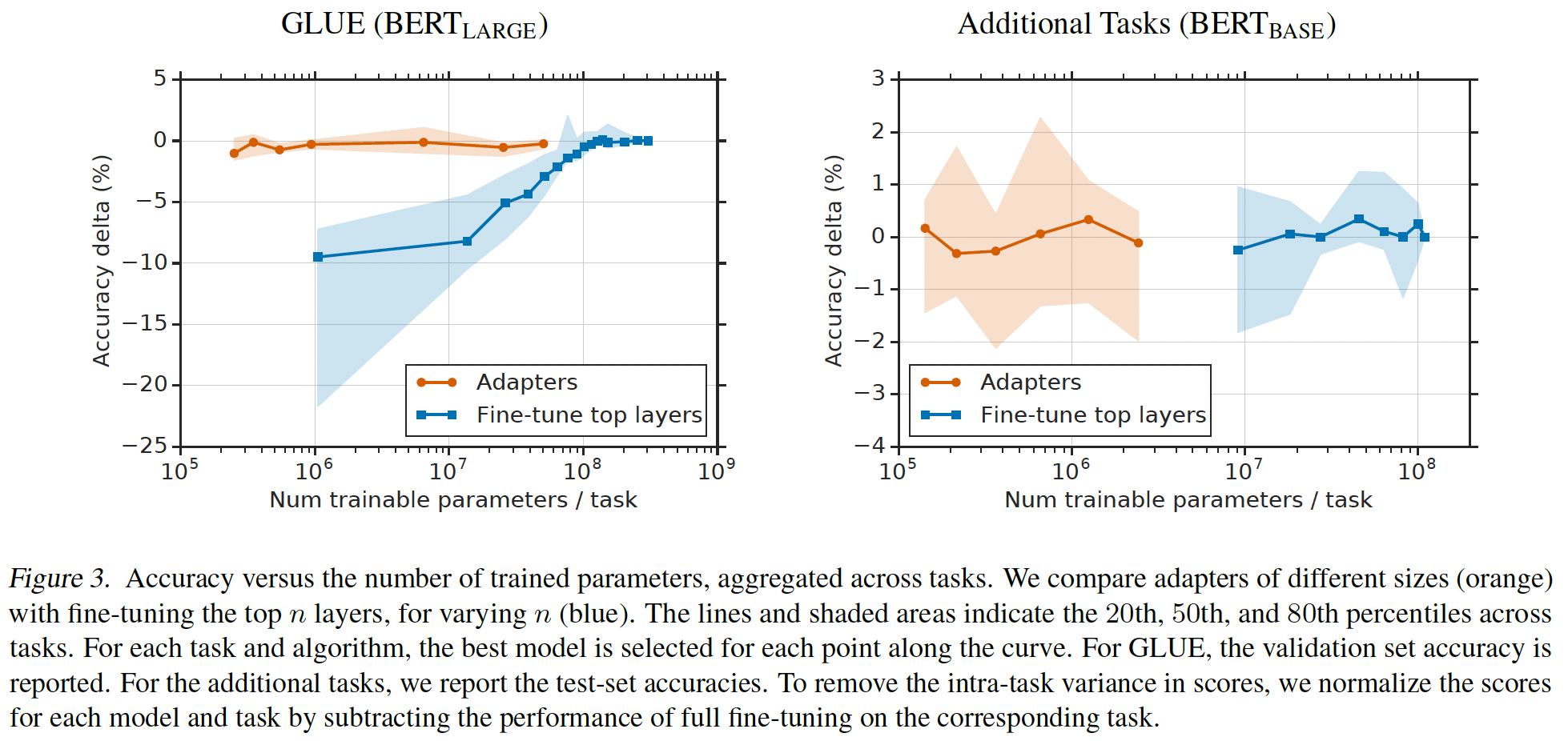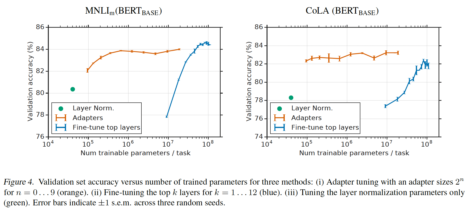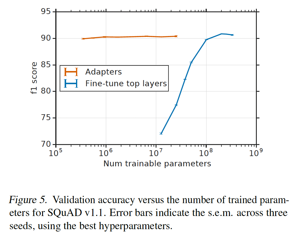 总的来说,与更新整个模型相比,这些因素使 adapters 成为一个在计算上和生态上更可行的选择。轻松访问 fine-tuned 模型也可以提高可重复性,因为研究人员将能够轻松地重新运行和评估先前工作中训练好的模型。