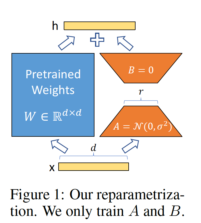 No Additional Inference Latency:在生产中部署时,我们可以显式地计算并存储 fine-tuned 模型相比,这保证了我们不会引入任何额外的推理延迟。