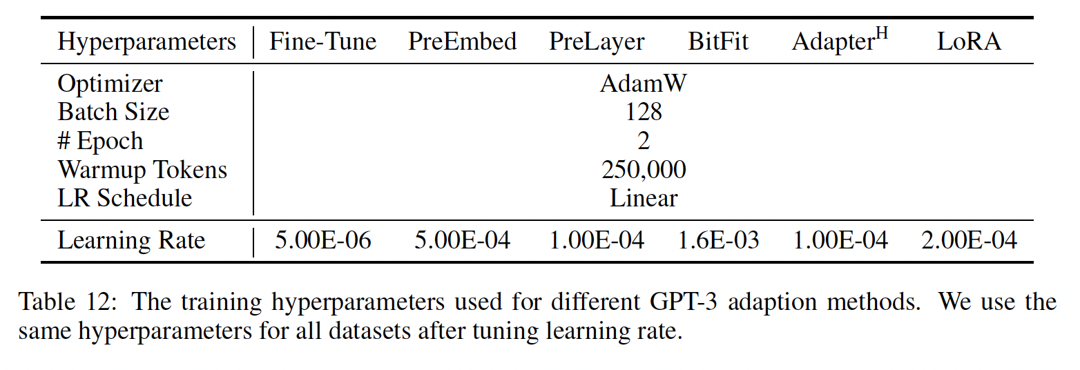 Bias-only or BitFit:是一种基线,其中我们只训练偏置向量而冻结其他所有内容。当代,这个基线也被 BitFit (《Bitfit: Simple parameter-efficient fine-tuning for transformer-based masked language-models》)研究过。