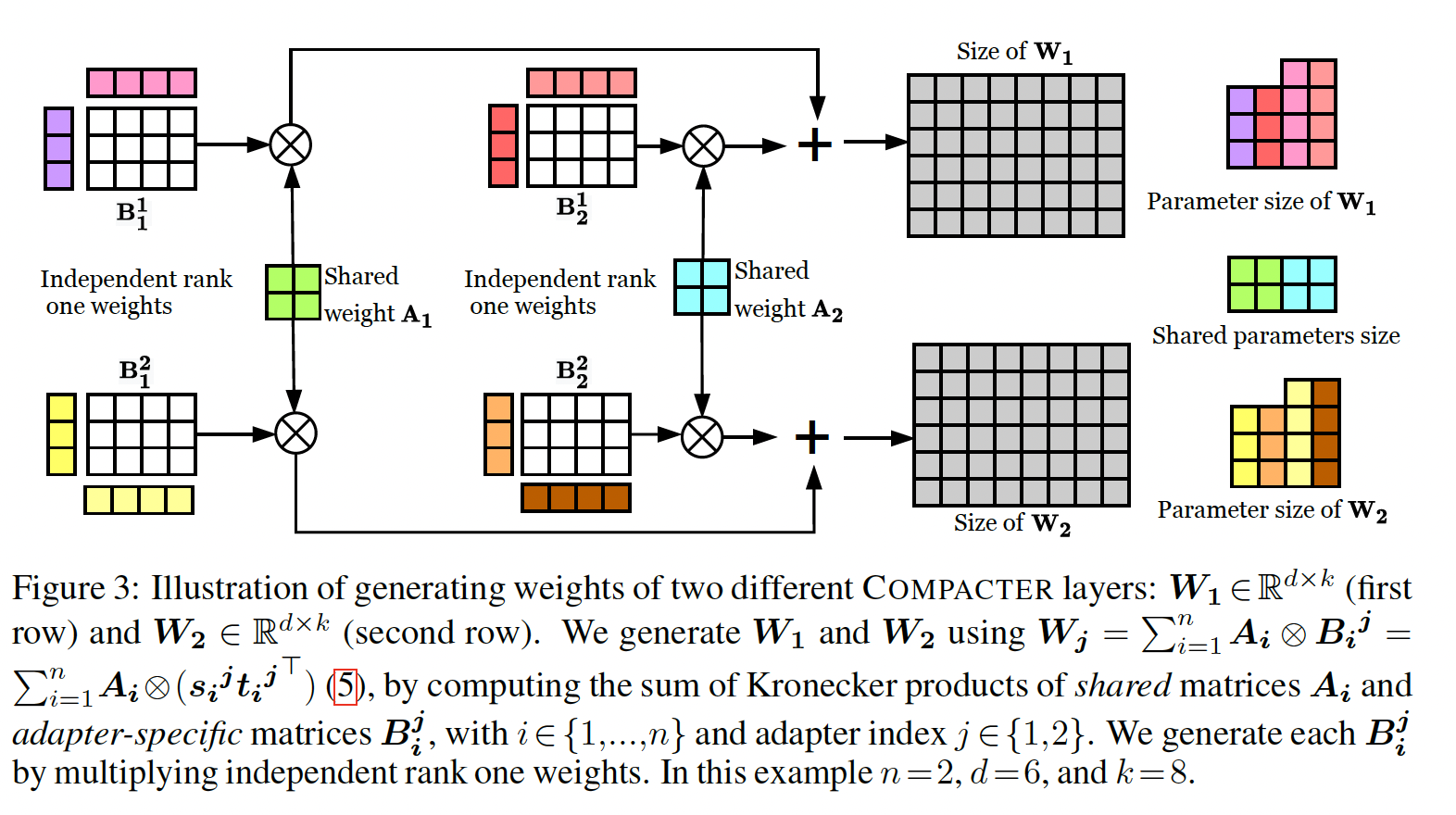 1) :我们提出了 Compacter (Compact Adapter))layers,一种参数高效的方法来适配大型语言模型。