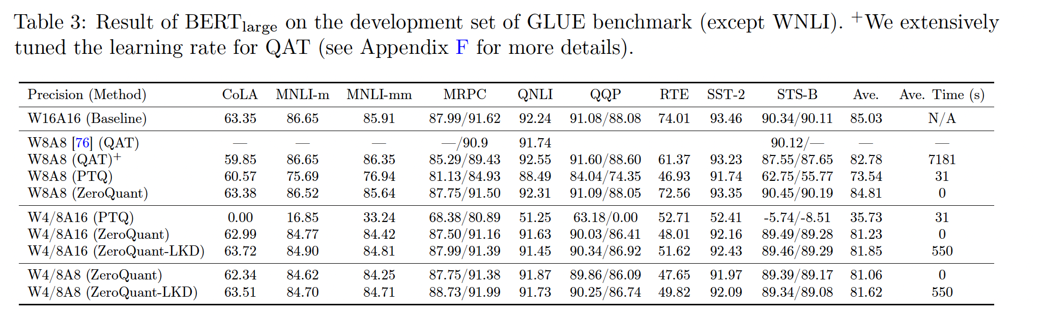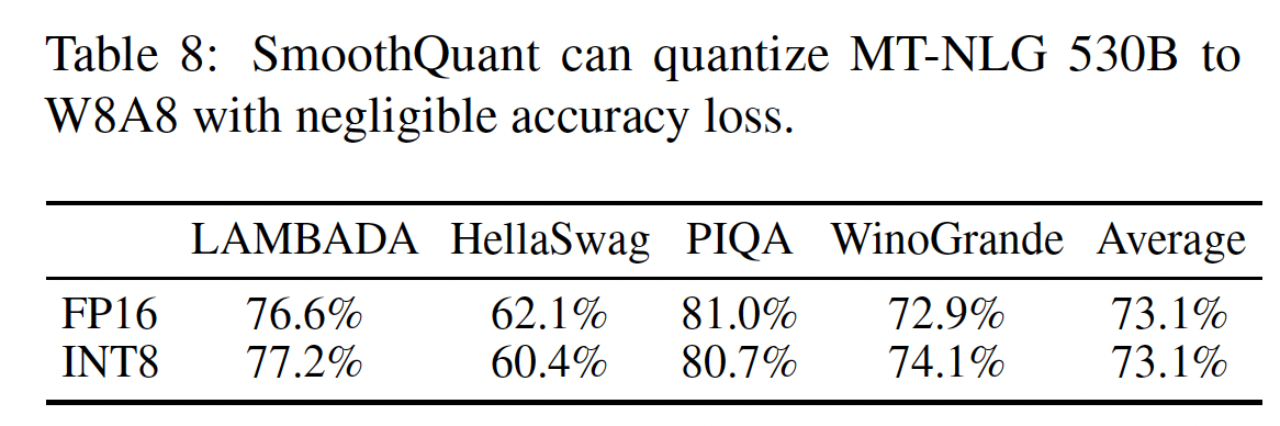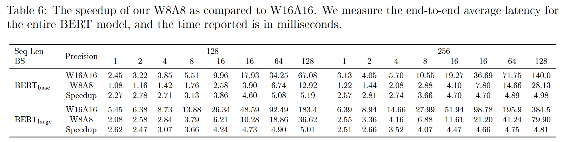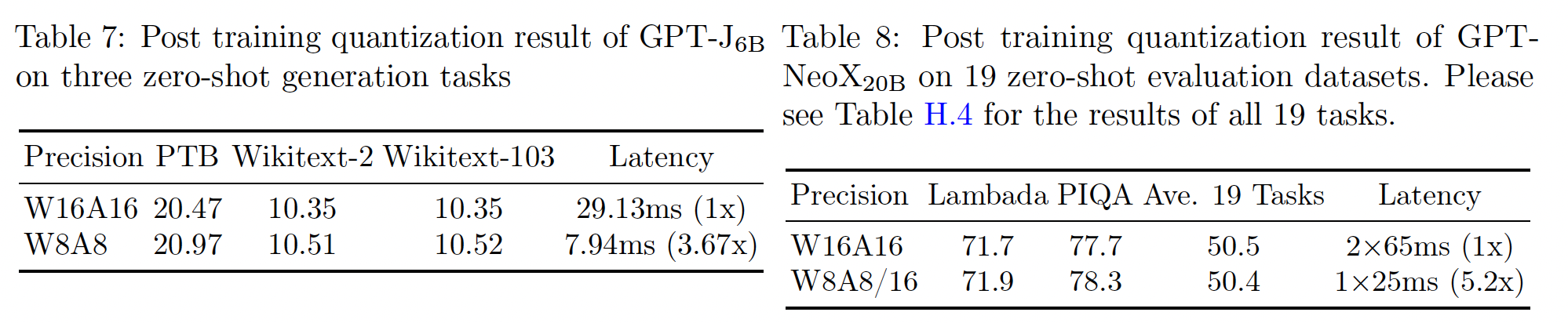 这些是自然的未来工作方向,我们相信这可以通过精心设计的 GPU kernels 和现有技术来实现(《ZeroQuant: Efficient and affordable post-training quantization for large-scale transformers》、《Extreme compression forpre-trained transformers made simple and efficient 》)。