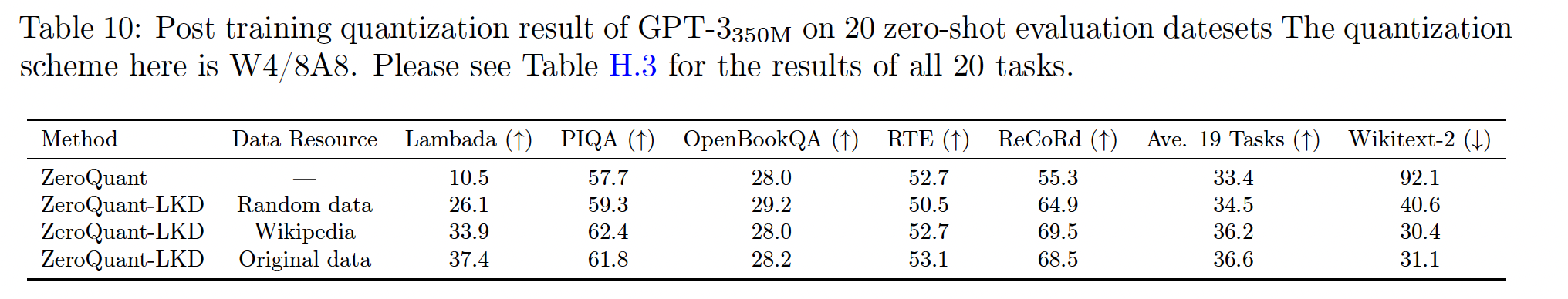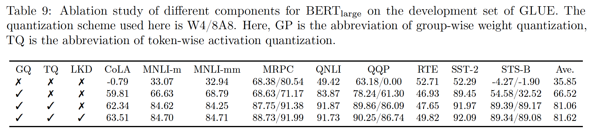 此外,我们的研究侧重于生成式任务,而且不考虑 activation quantization 。