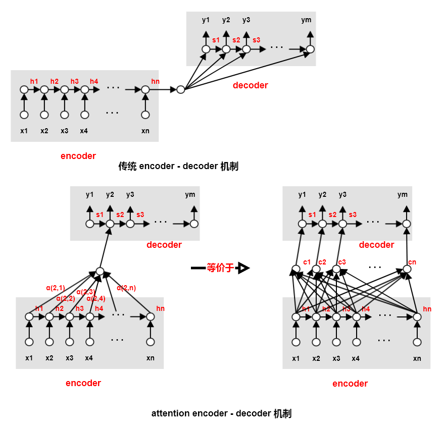 decoder位置 的输入是采用了 attention 机制的上下文向量 ,不同位置的上下文向量不同。