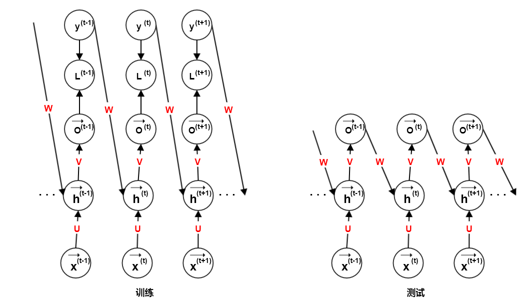 其中输入到隐状态的权重为 ,隐状态到输出的权重为 ,隐状态到隐状态的权重为 , 为输入偏置向量和输出偏置向量。