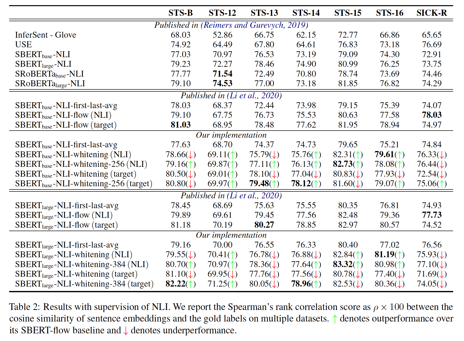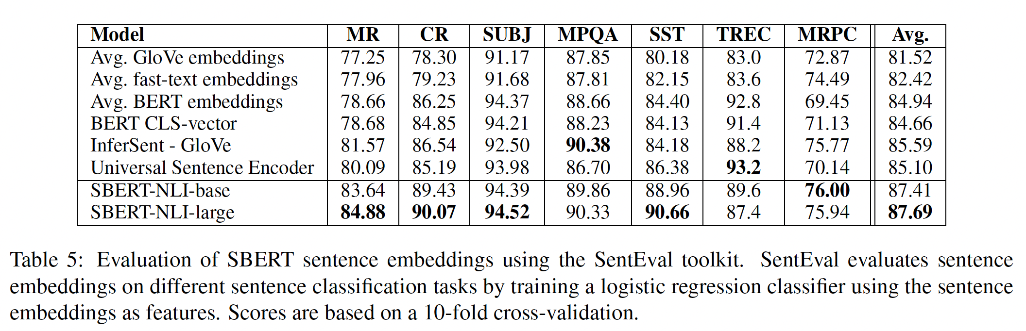 论文在 NLI 数据上对 SBERT 进行了微调,它所创建的 sentence embedding 明显优于其他 SOTA 的 sentence embedding 方法,如 InferSent 和 Universal Sentence Encoder 。