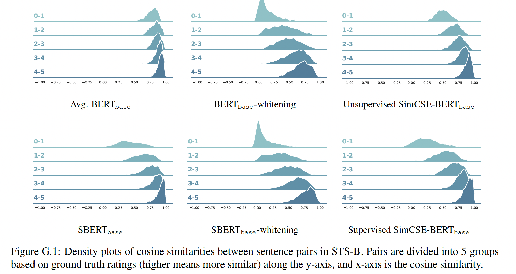 我们评估了 SBERT在常见的语义文本相似性 Semantic Textual Similarity: STS 任务中的表现。SOTA 的方法通常学习一个(复杂的)回归函数,将 pair-wise sentence embedding 映射到相似性分数。然而,这些回归函数是 pair-wise 工作的,可扩展性很差。相反,我们总是使用余弦相似度来比较两个 sentence embedding 之间的相似度。