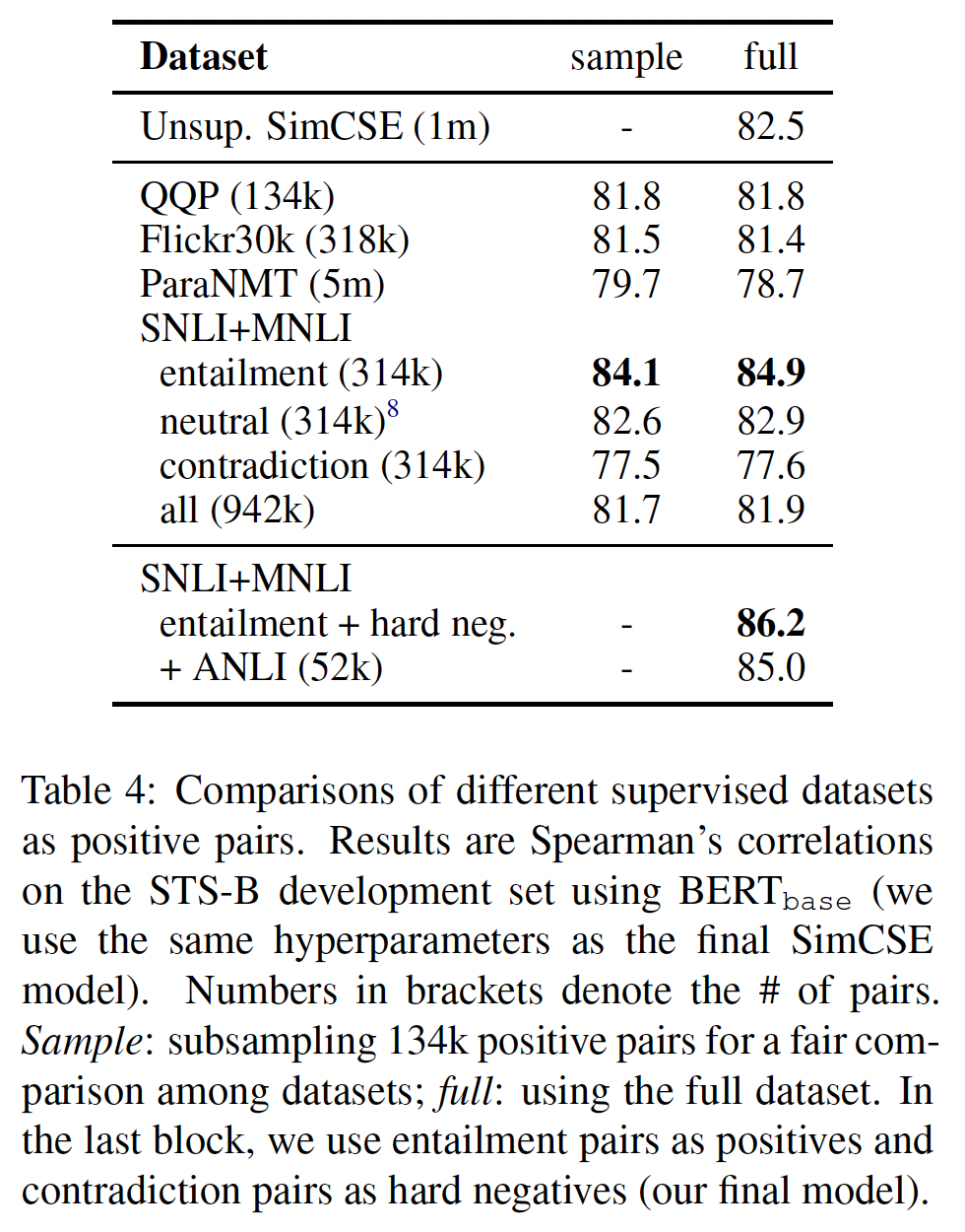 之前的工作(InferSent、《Universal Sentence Encoder》)发现:SNLI 数据集适合训练 sentence embedding 。