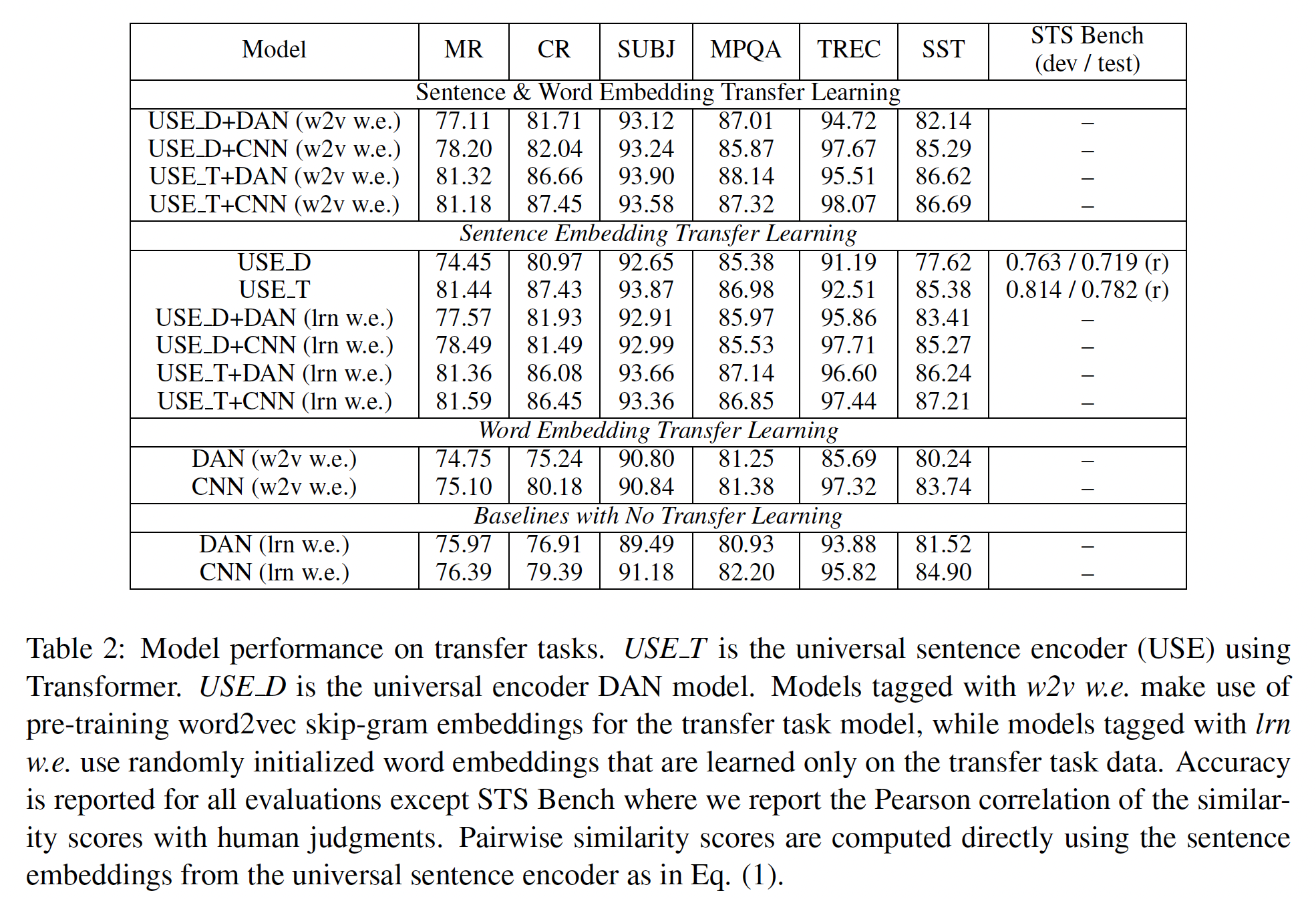 对于某些任务来说,使用更简单、更快的 DAN encoder 的迁移学习,可以和更复杂的 Transformer encoder 的表现一样好甚至更好。