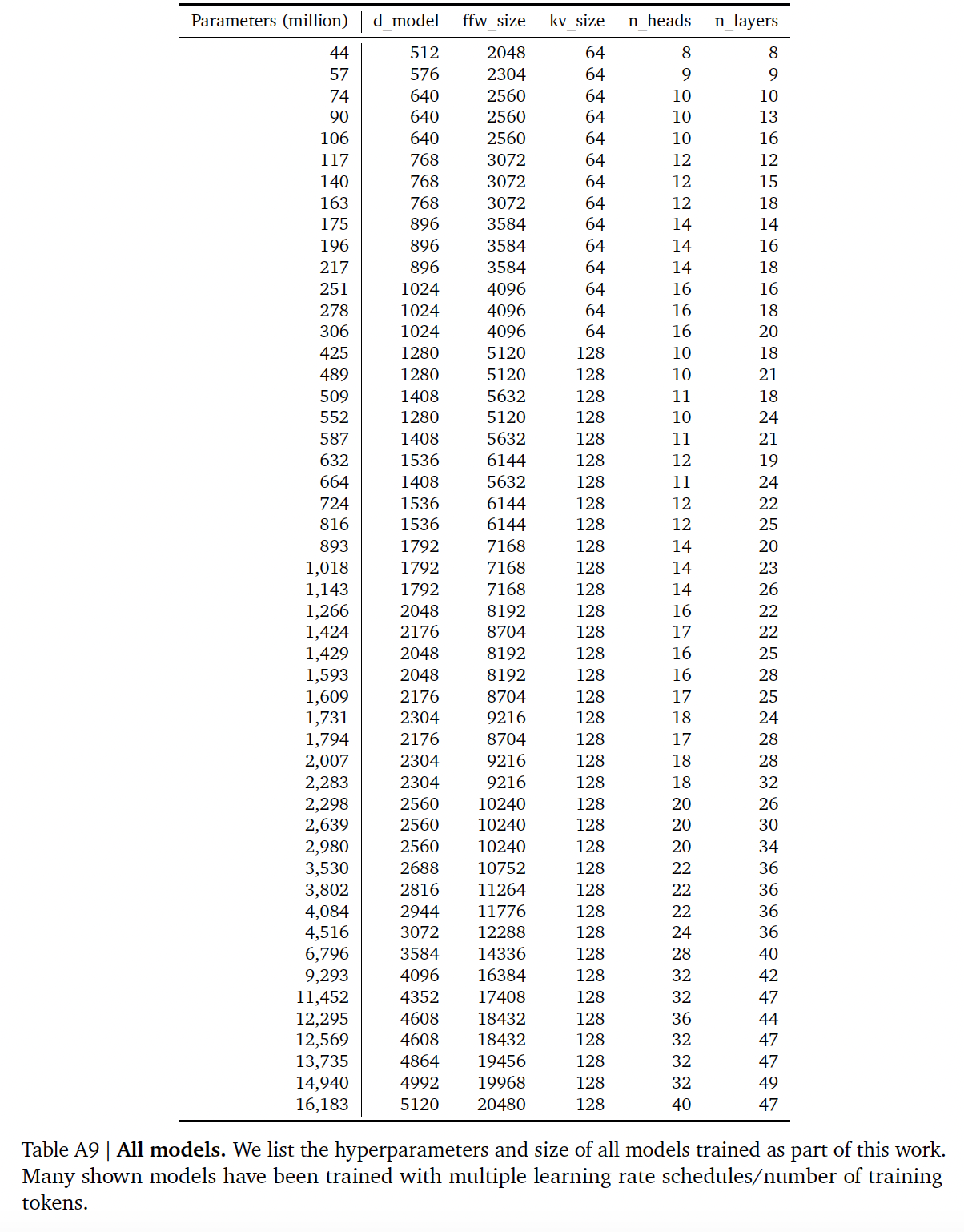 模型shape:包括 depth、width、attention head、以及 feed-forward dimension 。