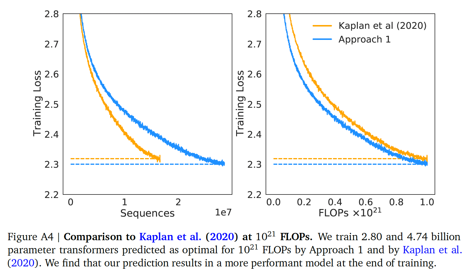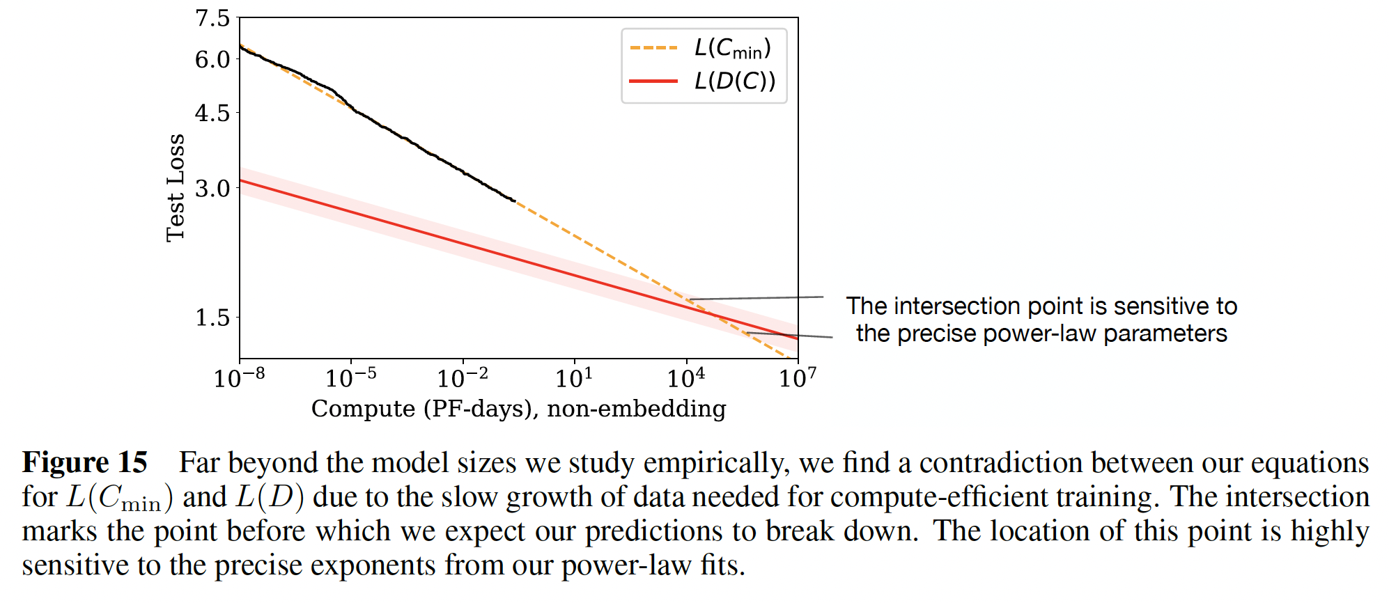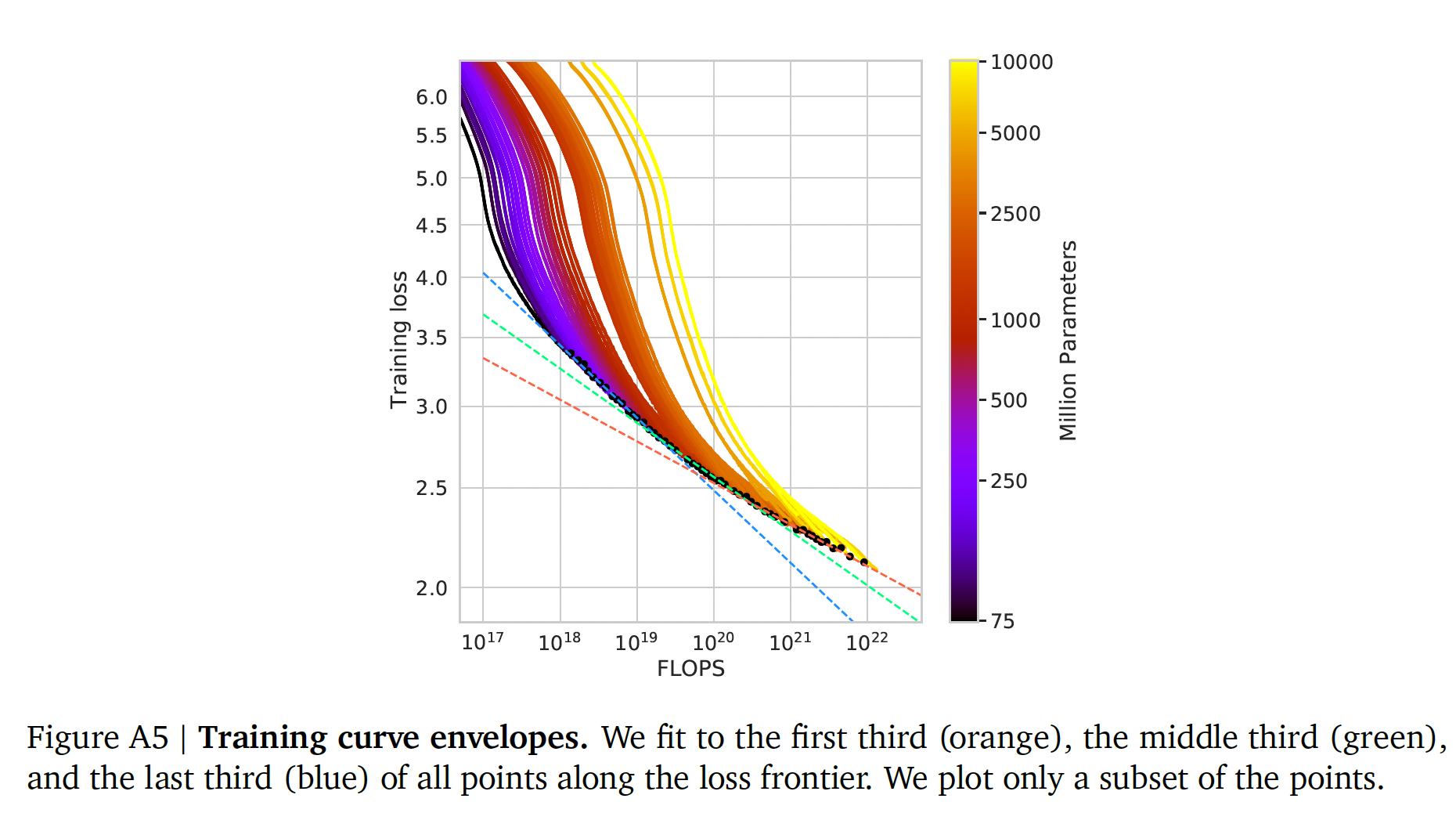 一些研究固定了每个数据样本的计算量(计算量往往与模型参数的数量成正比,固定这个值意味着固定模型大小),而我们研究的是与模型大小和 training computation 的 scaling 。