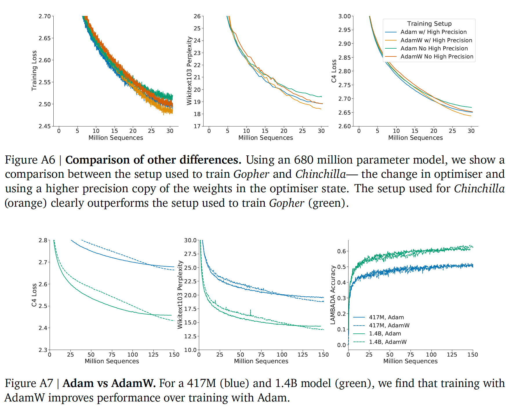 除非另有说明,我们用 Adam 优化器训练模型,其中训练了固定的 batch size 为 512 个序列,每个序列包含 1024 tokens 。