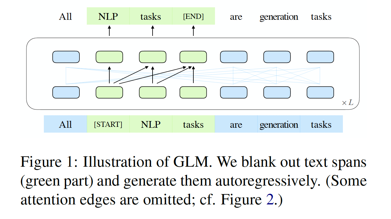 UniLMv2 对生成任务采用 partially auto-regressive modeling ,同时对 NLU 任务采用 auto-encoding objective 。相反,GLM 通过自回归预训练将 NLU 任务和生成任务统一起来。