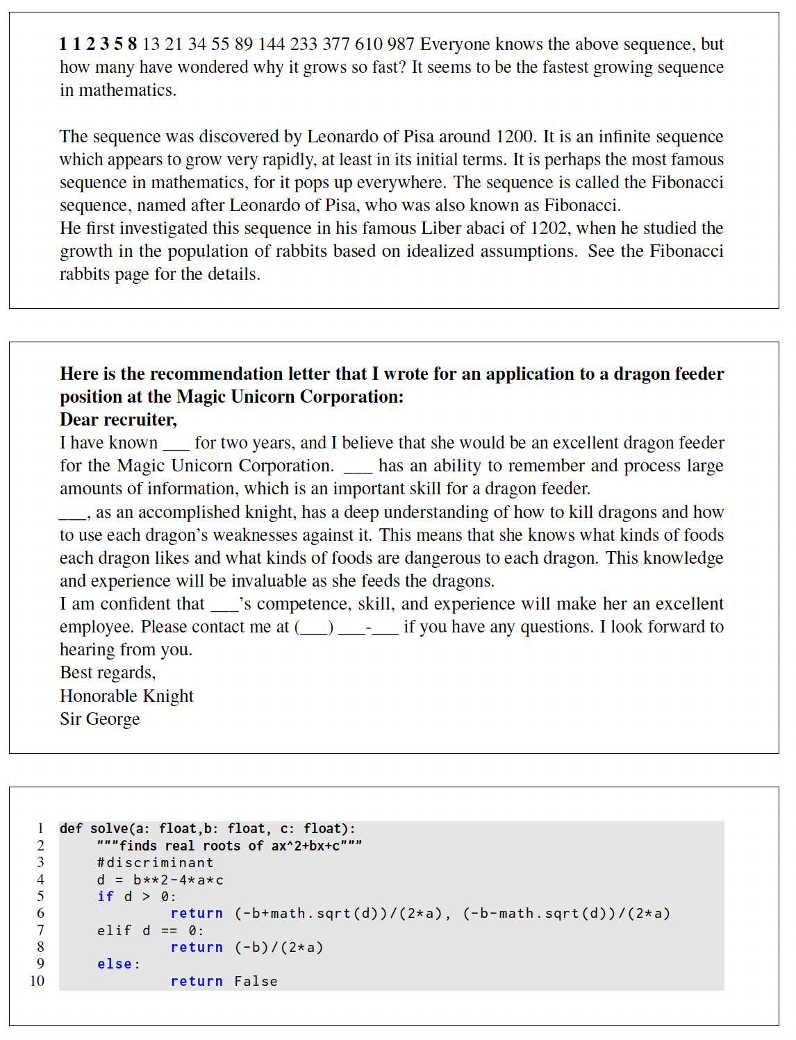 对于文本生成任务,给定的上下文构成了输入的 Part A ,并在上下文最后附加了一个 mask token 。该模型以自回归方式生成Part B 的文本。我们可以直接将 pretrained GLM 用于无条件生成任务,或者在下游的条件生成任务中对其进行微调。