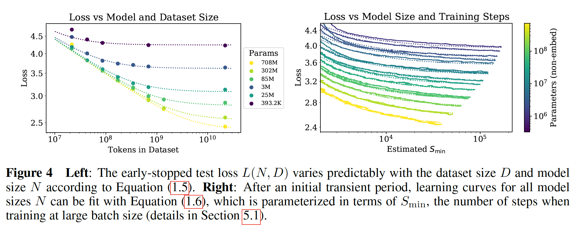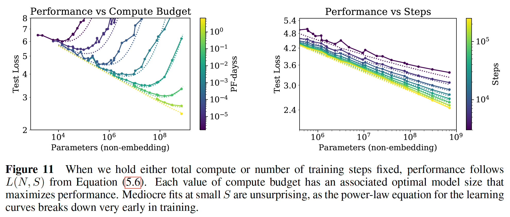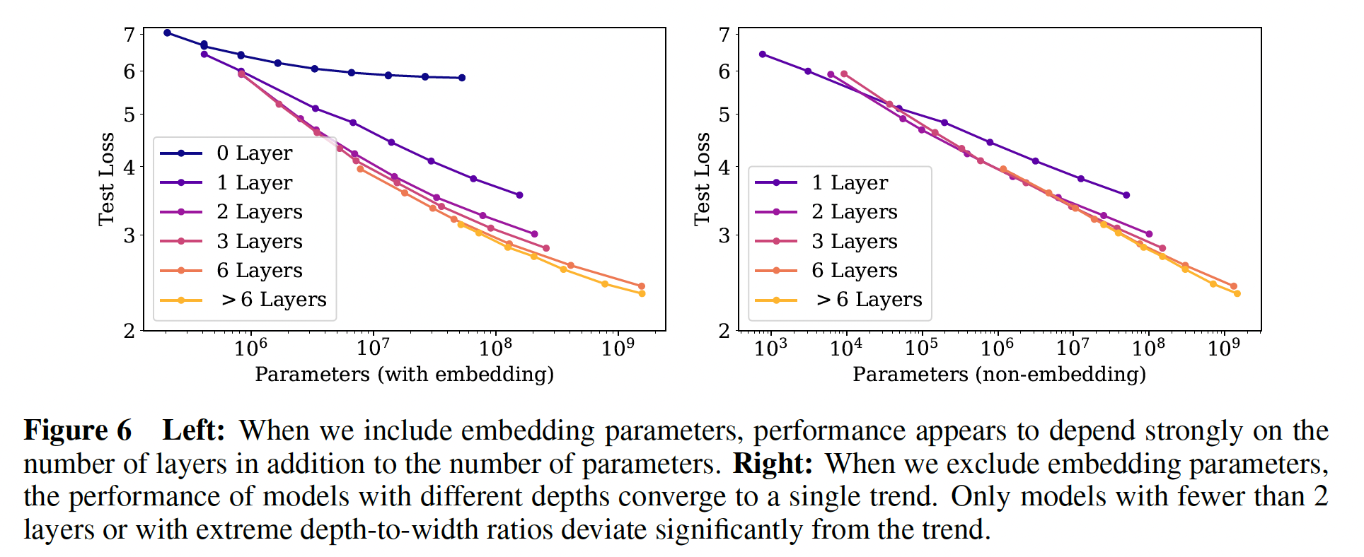 如 Figure 1 右图所示,我们发现关于 non-embedding 参数数量