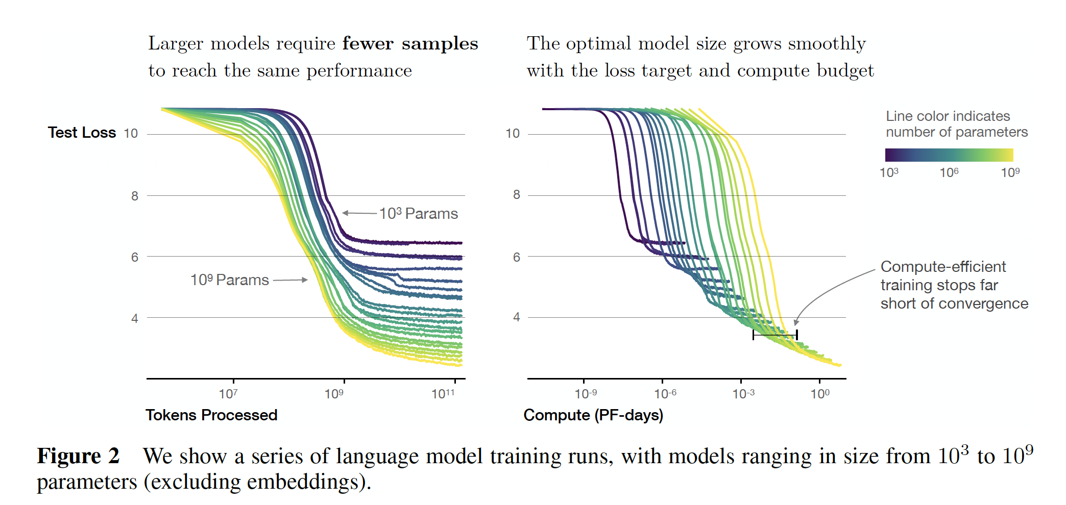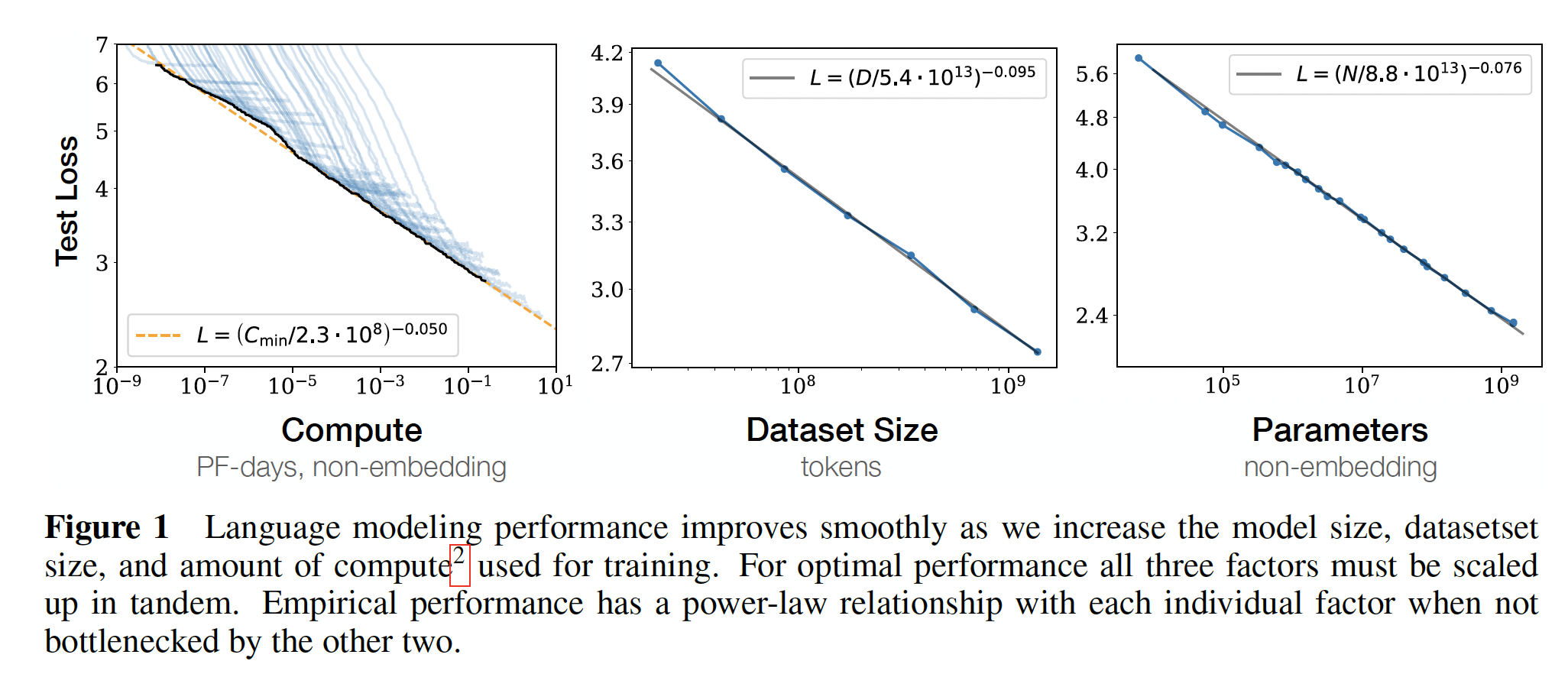 在整个过程中,作者将观察到性能的精确的 power-law scaling ,其中性能作为训练时间、上下文长度、数据集大小、模型大小、compute budget 的函数。