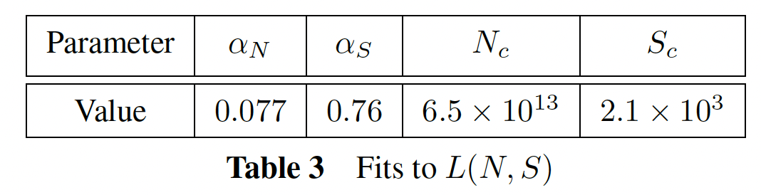其中,我们排除了 bias 项和其他次要的项。我们的模型在 embedding 矩阵中也有 positional embedding ,但我们在讨论 "模型大小" scaling law 。