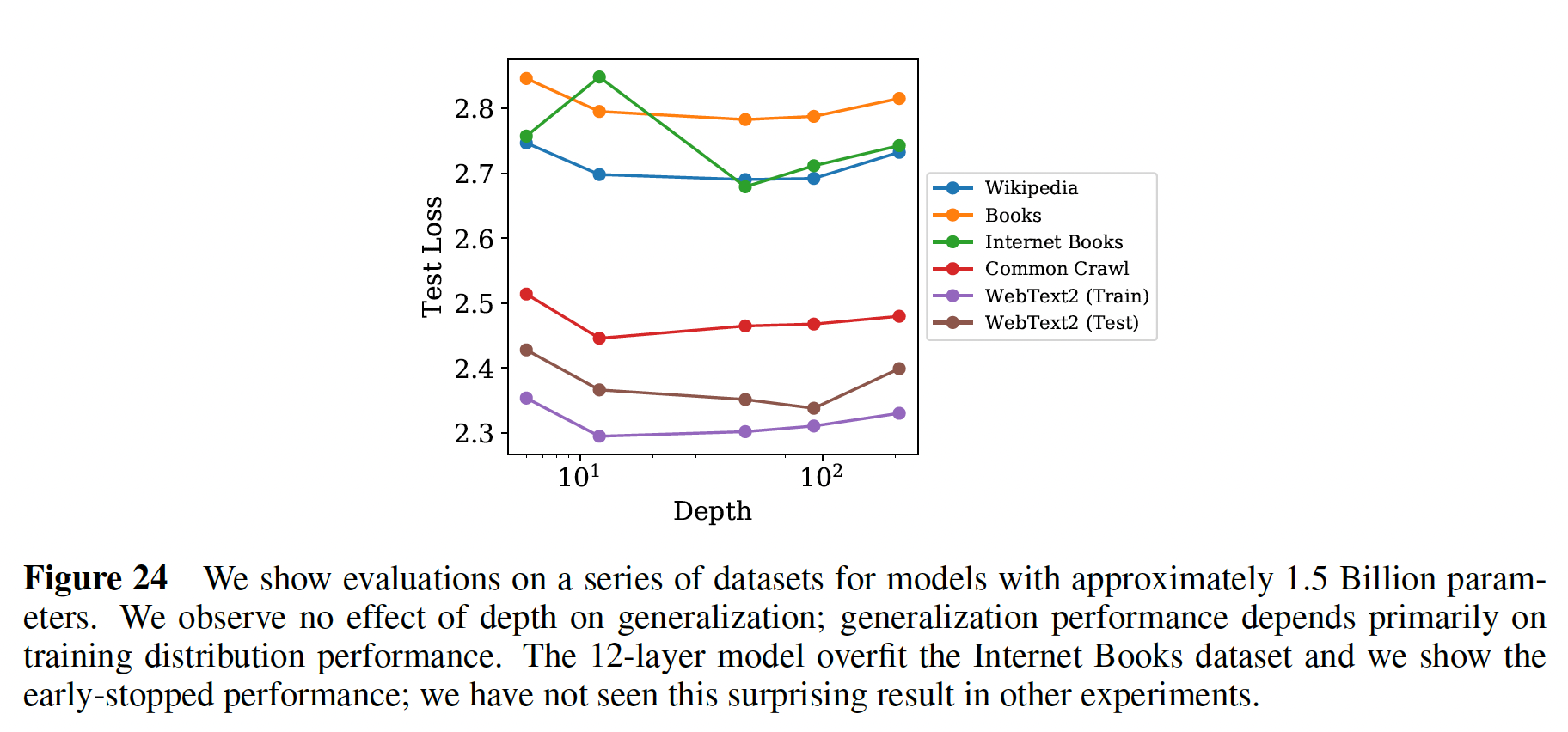 尽管这些模型是在 WebText2 数据集上训练的,但它们在其他各种数据集上的 test loss 也是