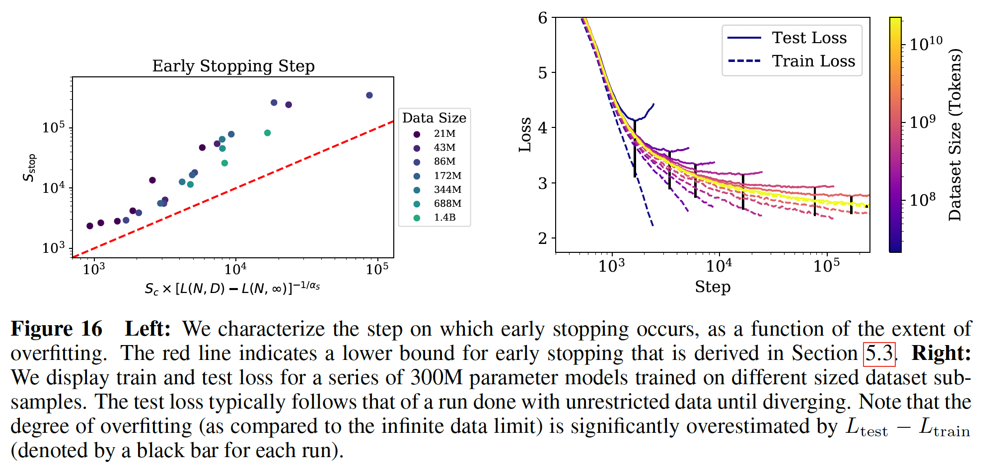 许多研究(《High-dimensional dynamics of generalization error inneural networks》、《Reconciling modern machine learning and the bias-variance trade-off》对高度过参数化的模型(highly overparameterized model)的泛化进行了研究,发现当模型规模达到数据集规模时,会出现 "jamming transition" (《Scaling description of generalization with number of parameters in deep learning》)(这可能需要超出典型实践许多数量级的 training ,尤其是不使用早停)。我们没有观察到这样的 transition ,并发现所需的训练数据在模型大小上呈亚线性 scaling 。模型规模的扩展,特别是在 large width 上的扩展,可能为思考我们的一些 scaling 关系提供了一个有用的框架。