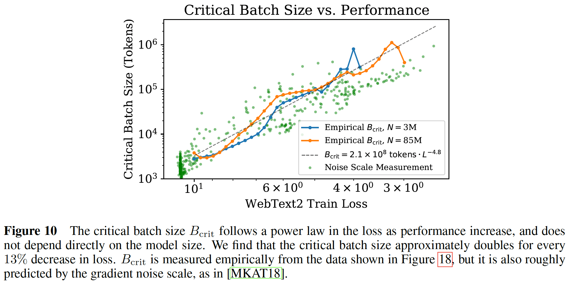 critical batch size,在后续内容中定义和讨论。使用 critical batch size 的训练提供了训练时间和计算效率之间的大致上的最佳 trade-off 。